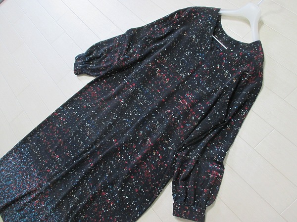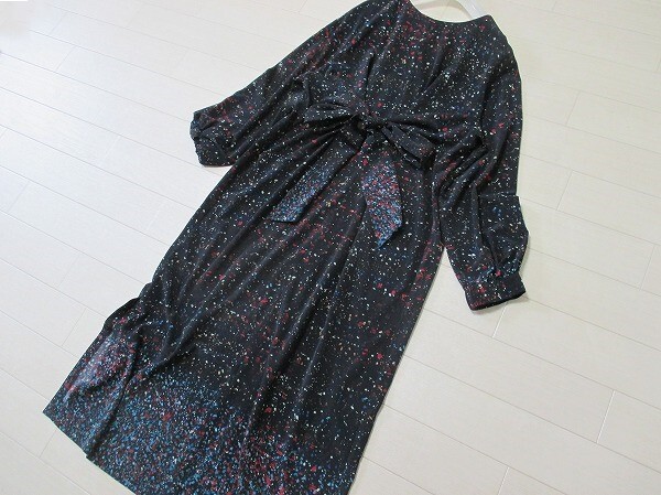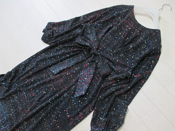 トゥモローランド*TOMORROWLAND 総柄プリントリボンワンピース 日本製 片側スリット