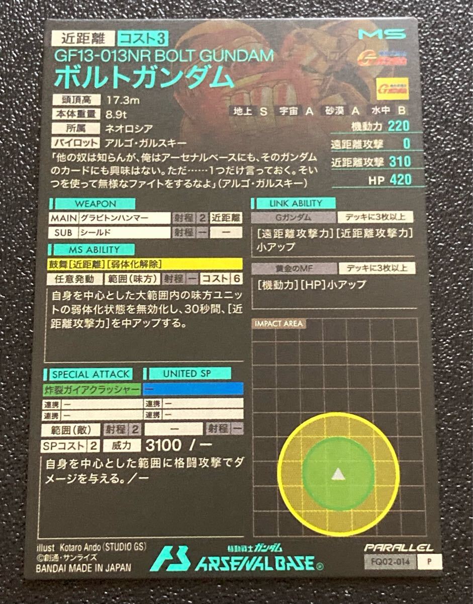 ※他にも機動戦士ガンダム アーセナルベース等を掲載していますのでよろしければご確認ください。