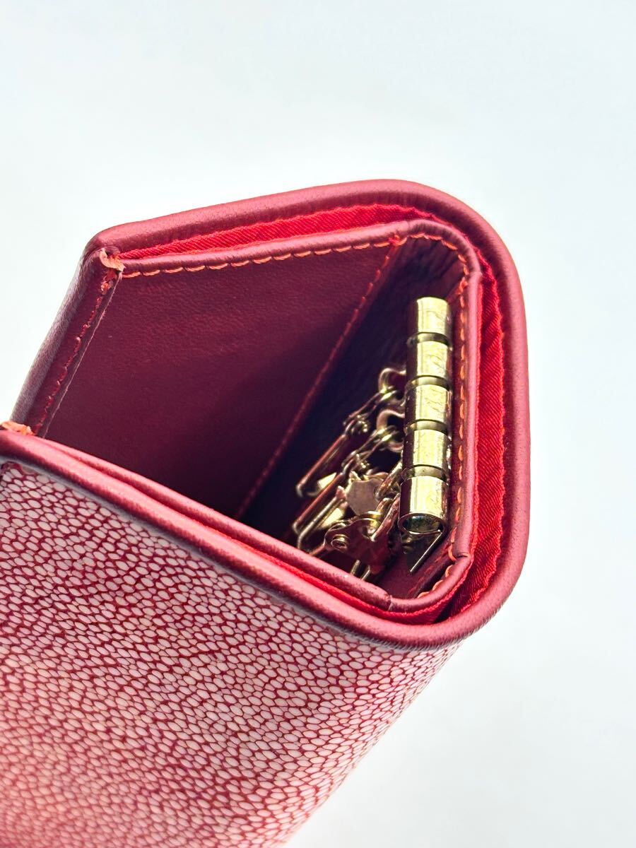 7-12 未使用 Damasquina ダマスキーナ エイ革 スティングレイ スティングレー キー ケース エキゾチック レザー レッド