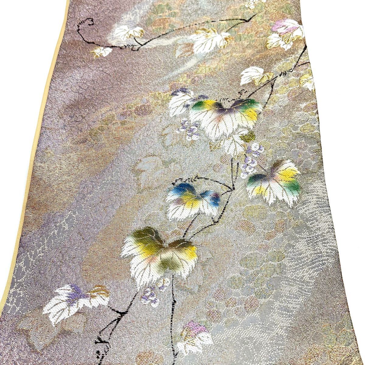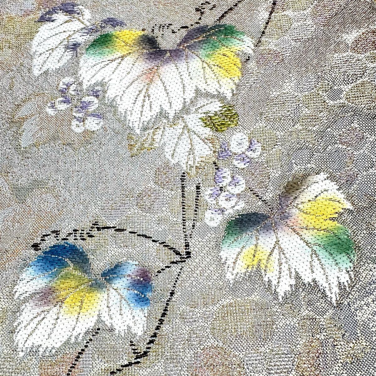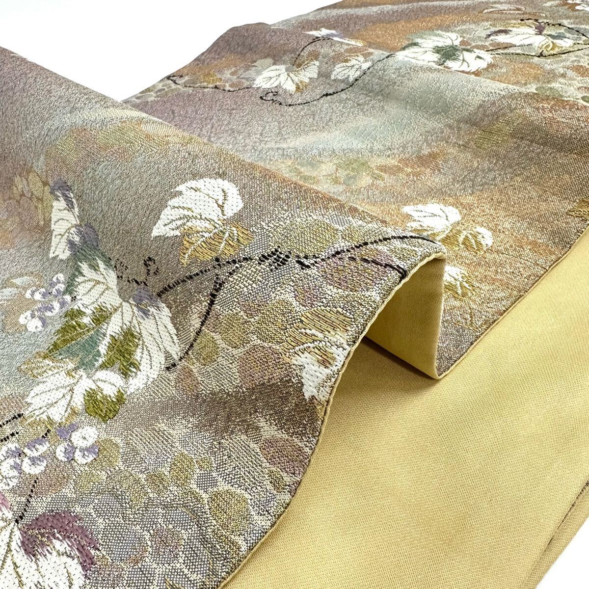 【七福】c656 逸品 高級品 正絹 袋帯 六通 葡萄 やまと誂製 金糸 銀糸 刺繍 豪華