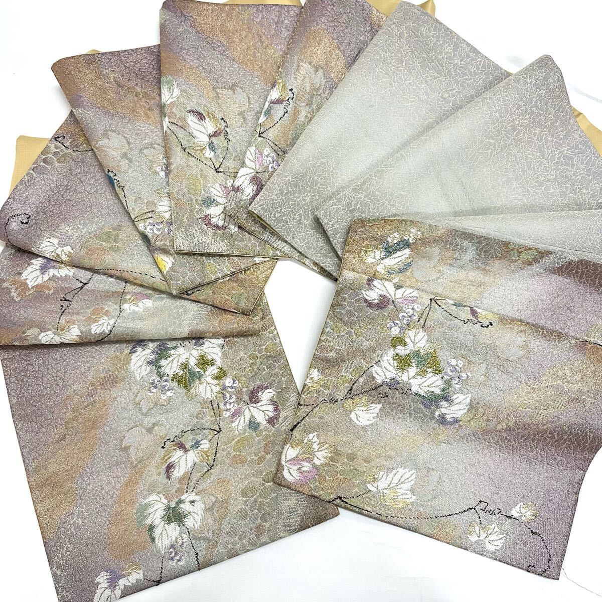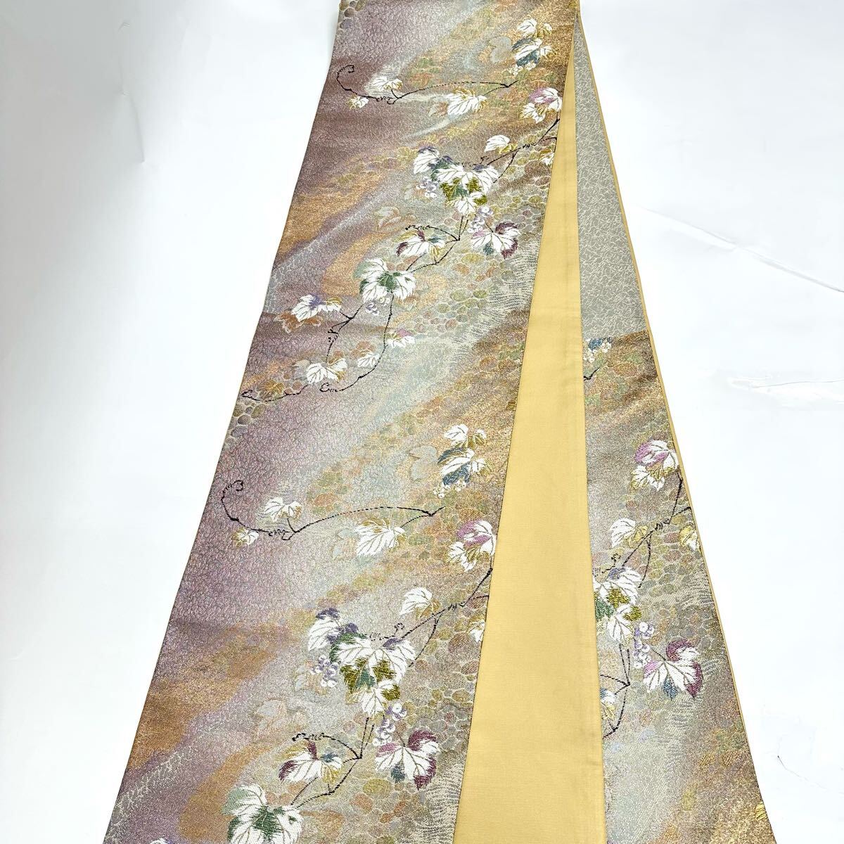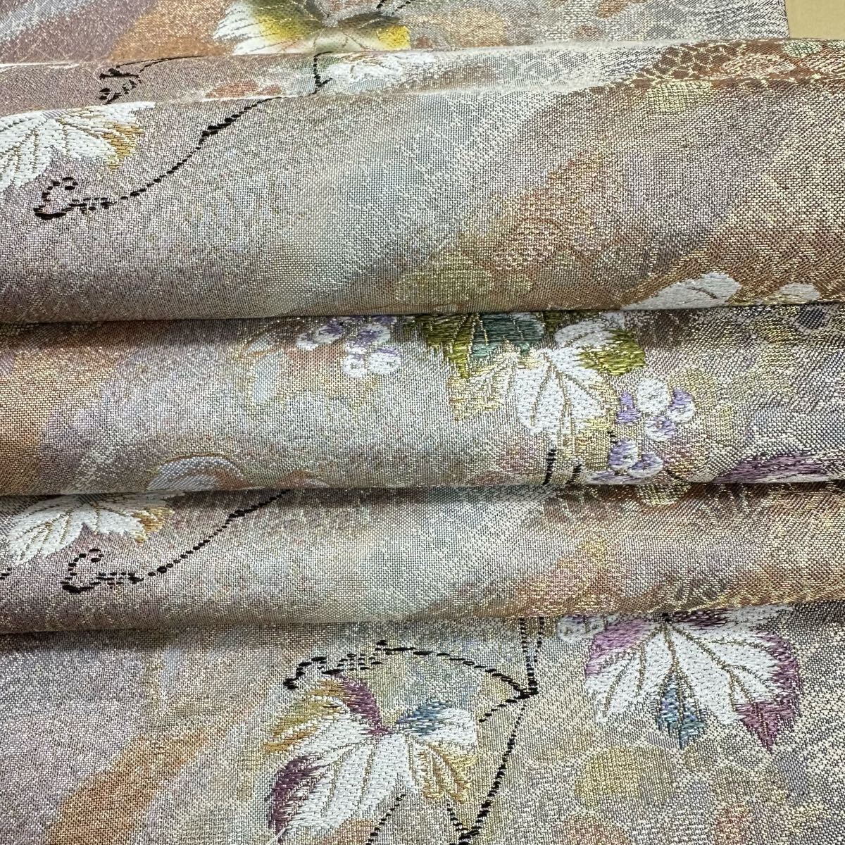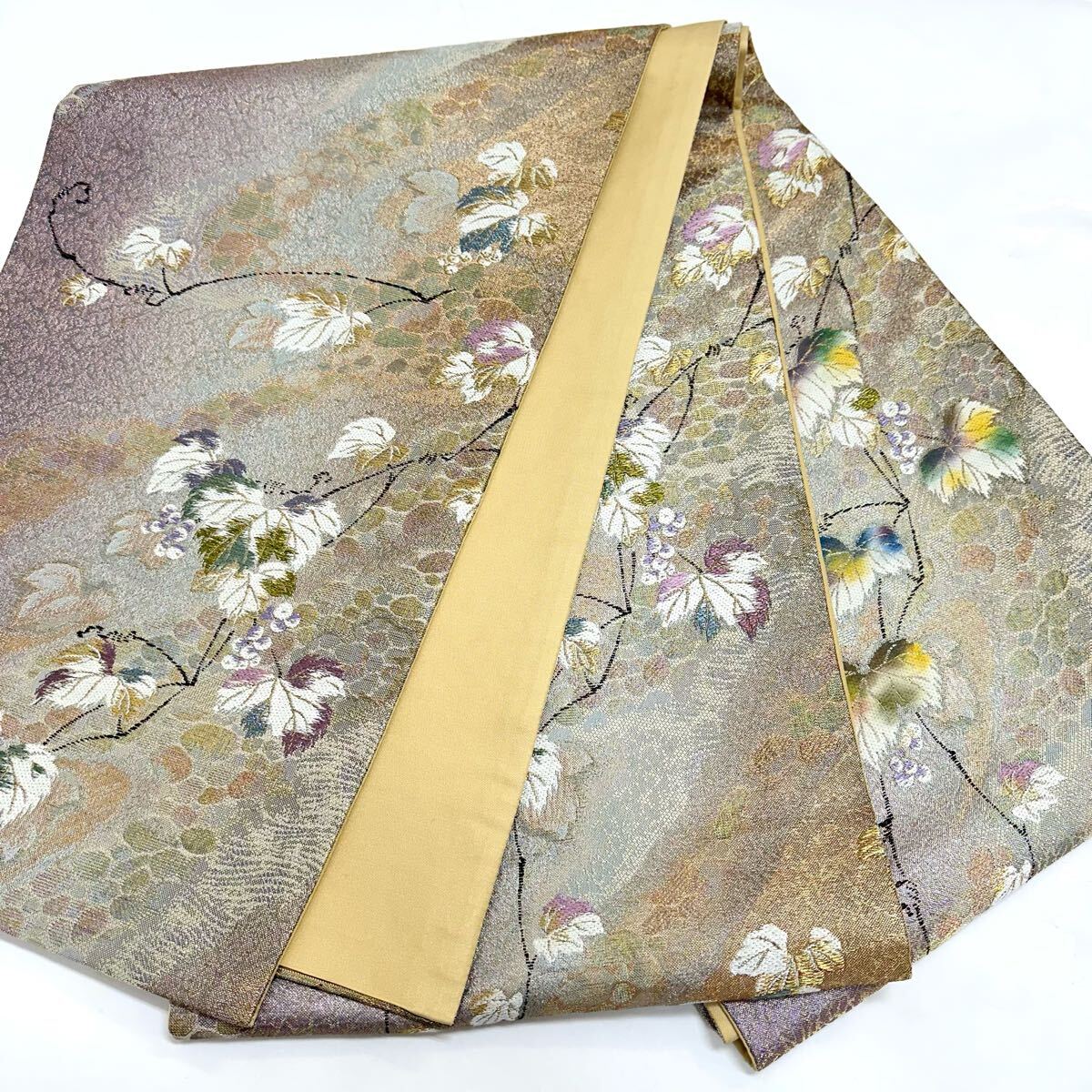 【七福】c656 逸品 高級品 正絹 袋帯 六通 葡萄 やまと誂製 金糸 銀糸 刺繍 豪華