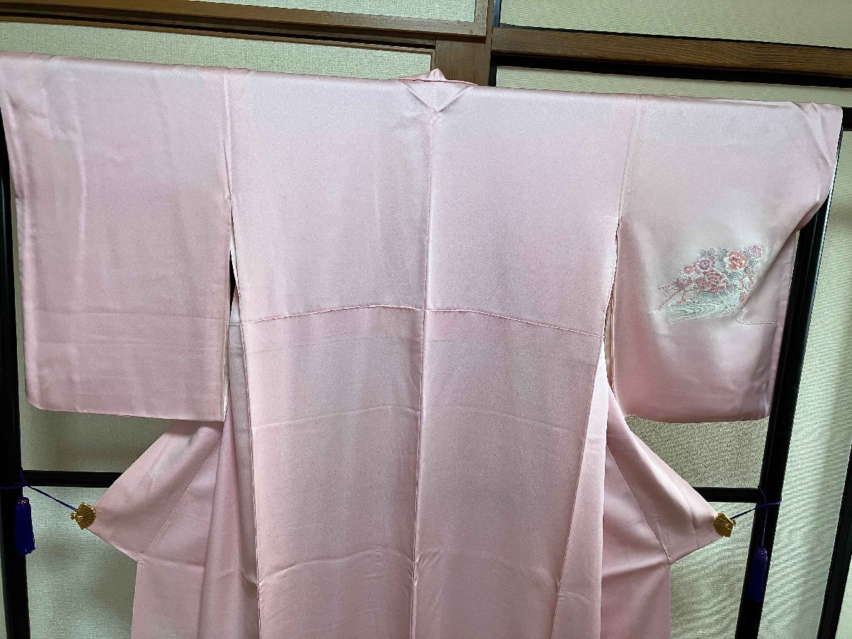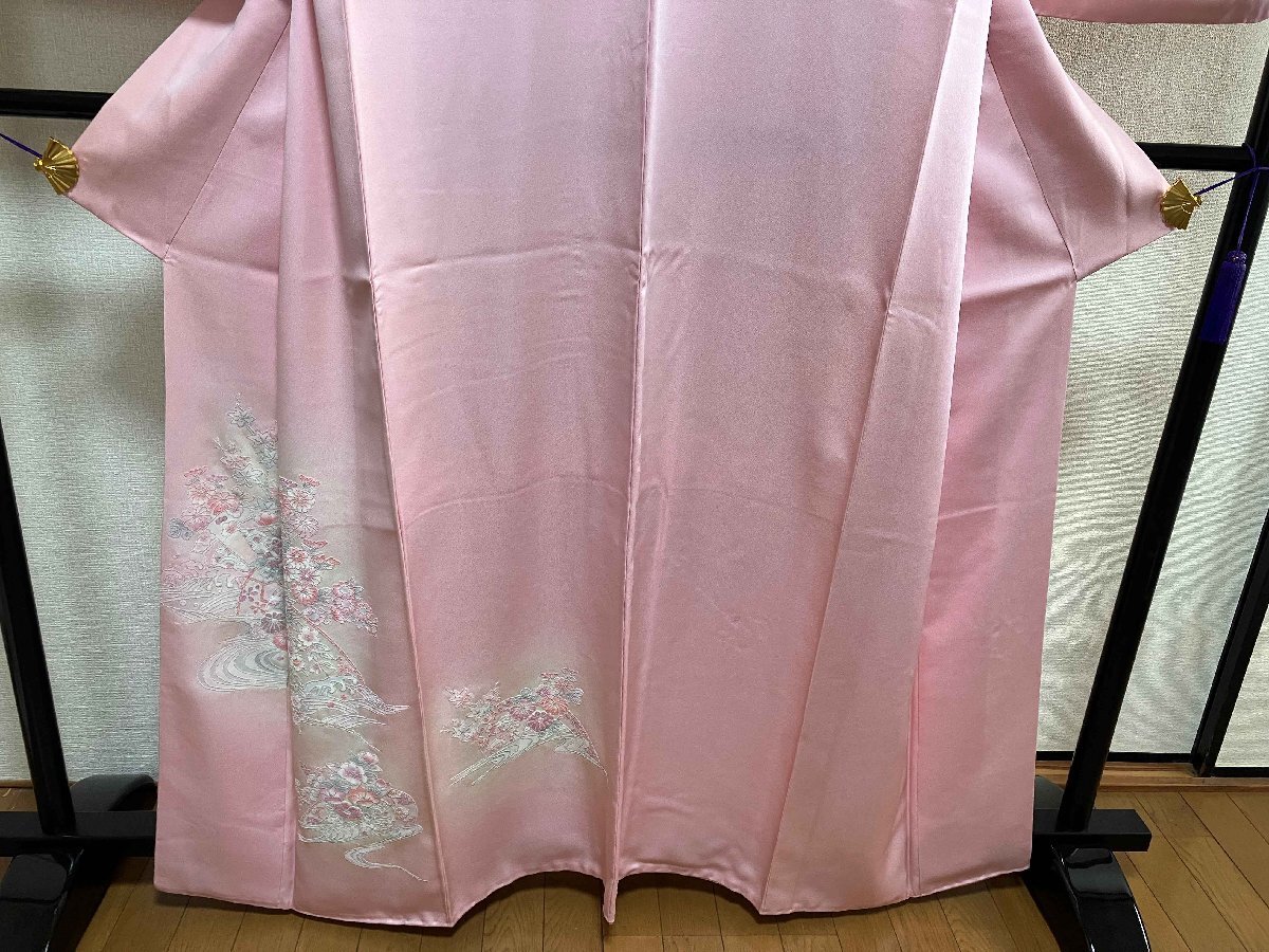 着物 訪問着 正絹 / 桃色系 / 草花文 紅葉 菊 / 身丈約158cm 裄丈約65cm 袖幅54cm 後幅29.5cm 前幅22.5cm TCS着物 W15