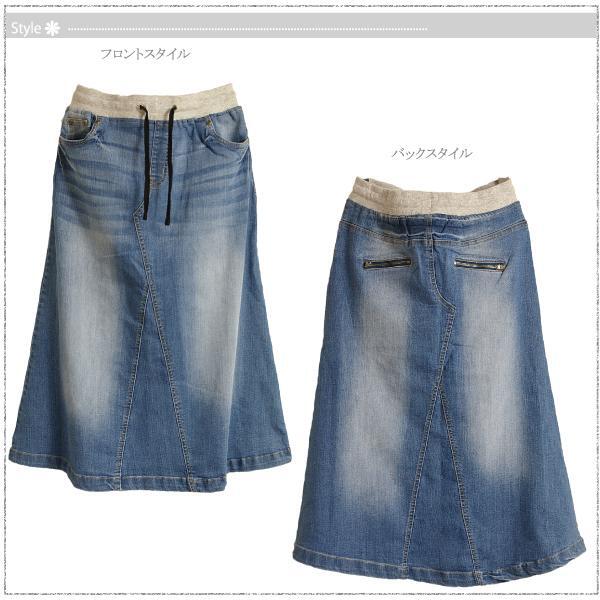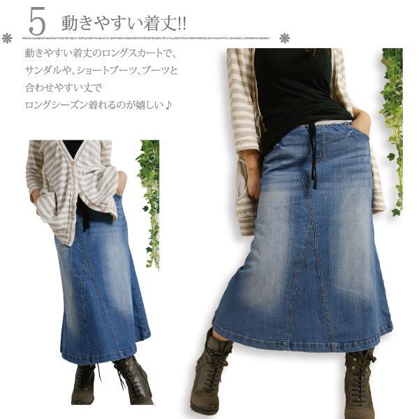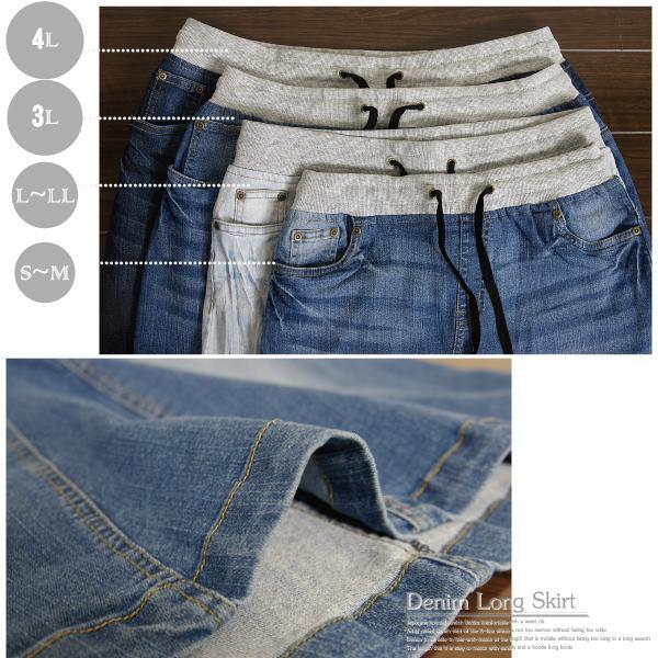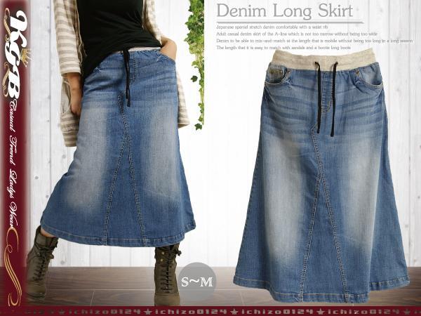 S~M デニム ロングスカート ウエストリブ ストレッチ ブルー 新品