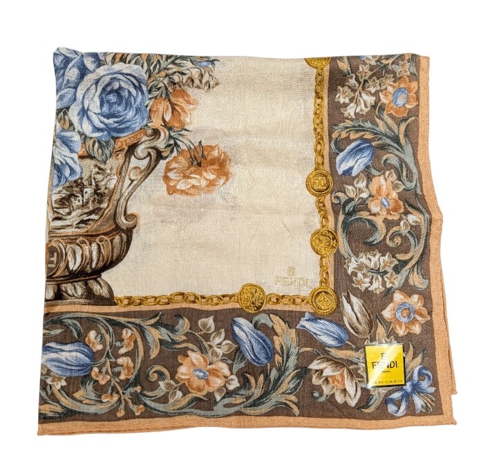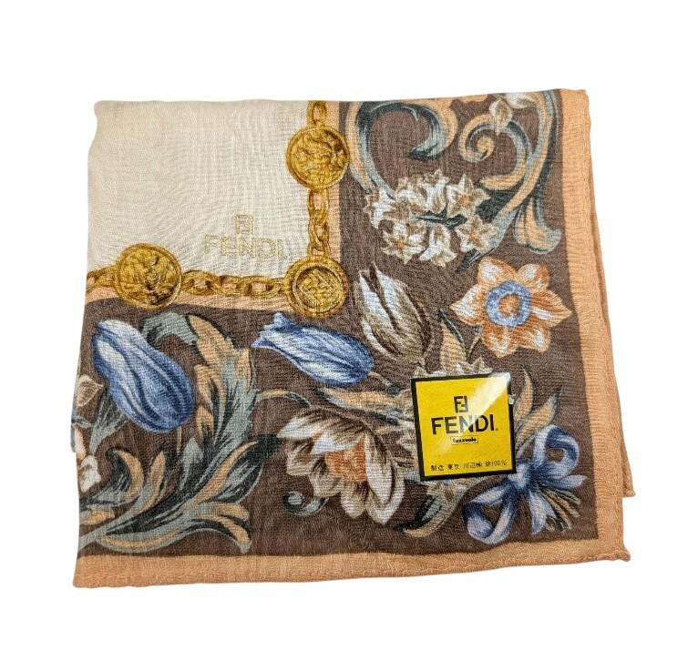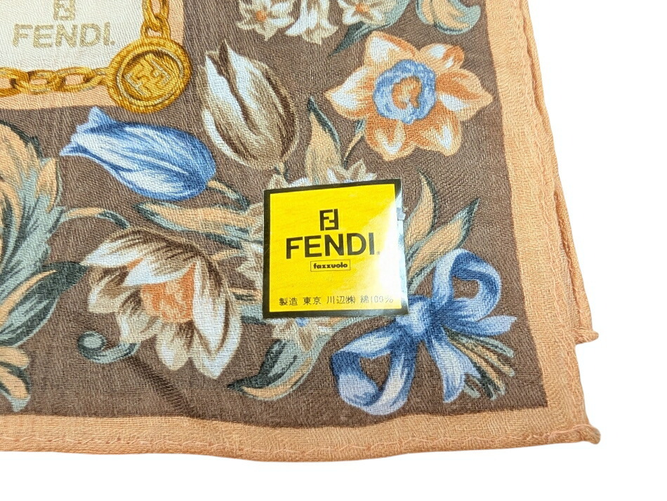 未使用 フェンディ ハンカチ 花柄 フラワー スカーフ ブラウン ストライプ コットン 綿 レディース FENDI 【中古】