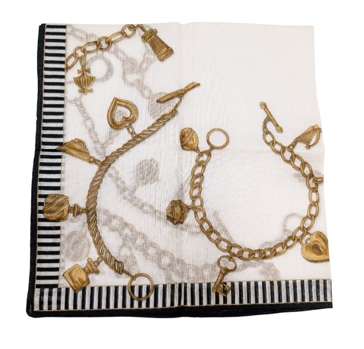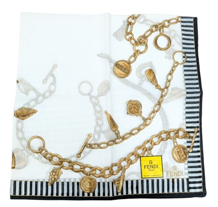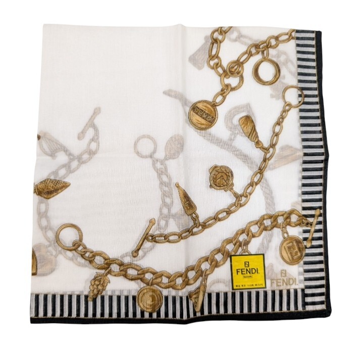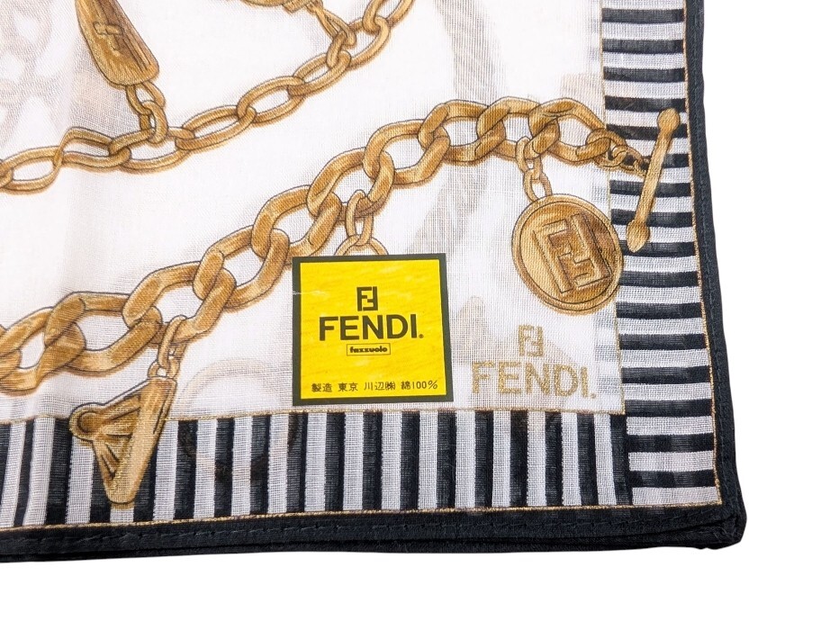 未使用 フェンディ ハンカチ アクセサリー柄 スカーフ ホワイト ブラック コットン 100% レディース FENDI 【中古】