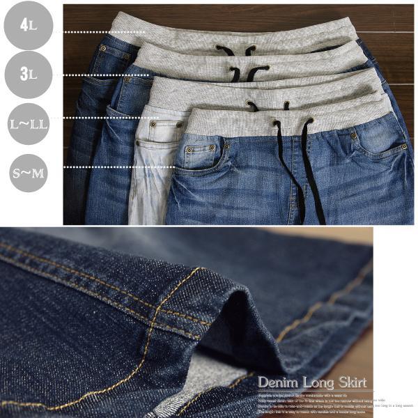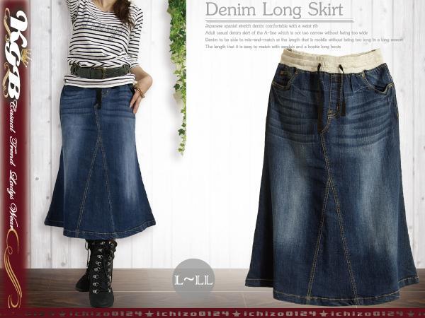 L~LL デニム ロングスカート ウエストリブ ストレッチ ネイビー 新品