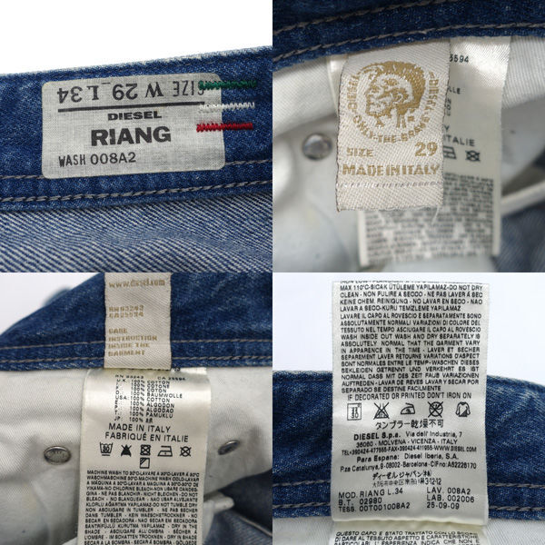 表記サイズ:W29 L34 ウエスト (約cm):82 太腿幅 (約cm):27 股上 (約cm):25.5 股下 (約cm):79 裾幅 (約cm):205 ![]() |