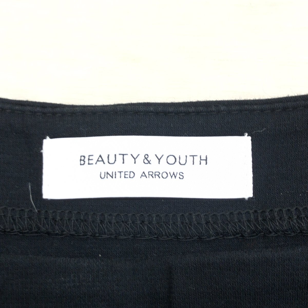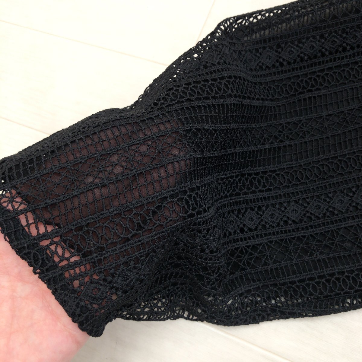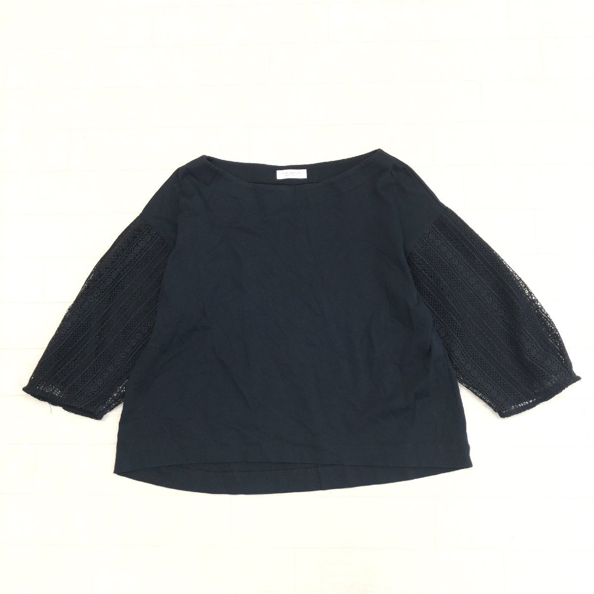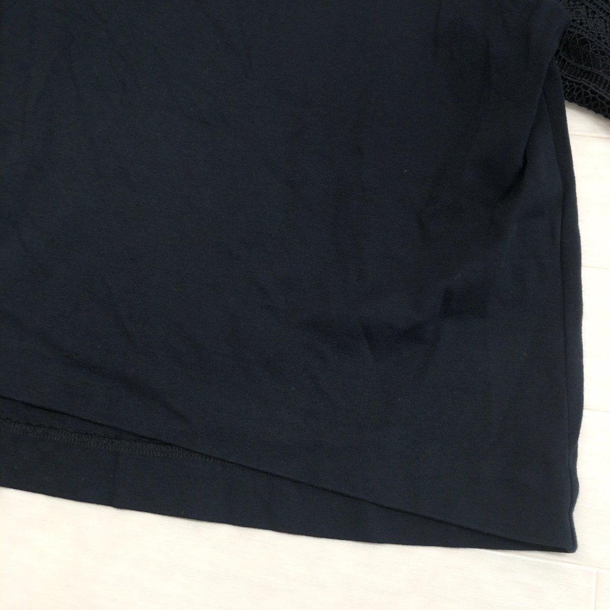 美品 B&Y UNITED ARROWS ユナイテッドアローズ 定価9,900円 袖レース 七分袖 カットソー F 黒 ブラック 日本製 Tシャツ シースルー 婦人