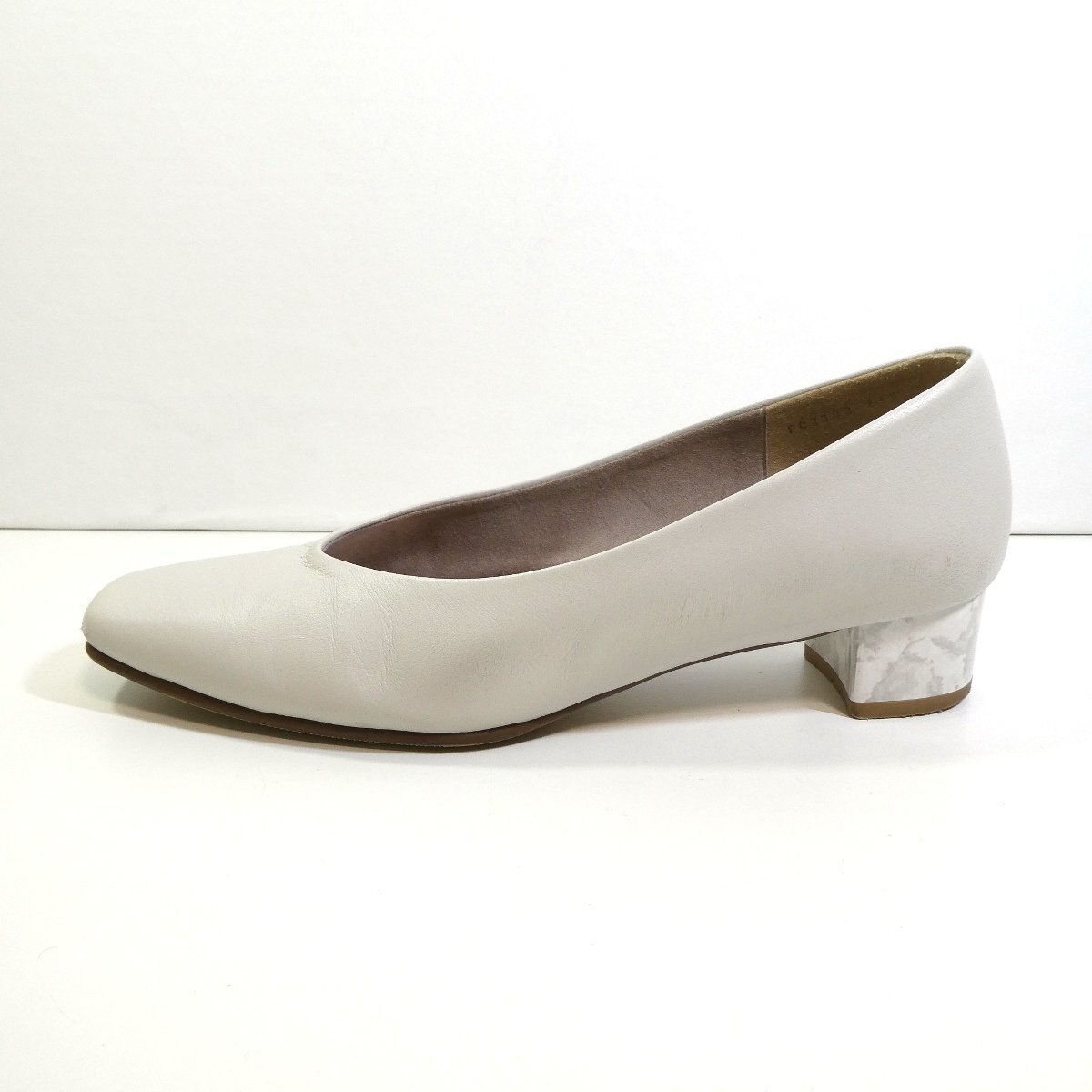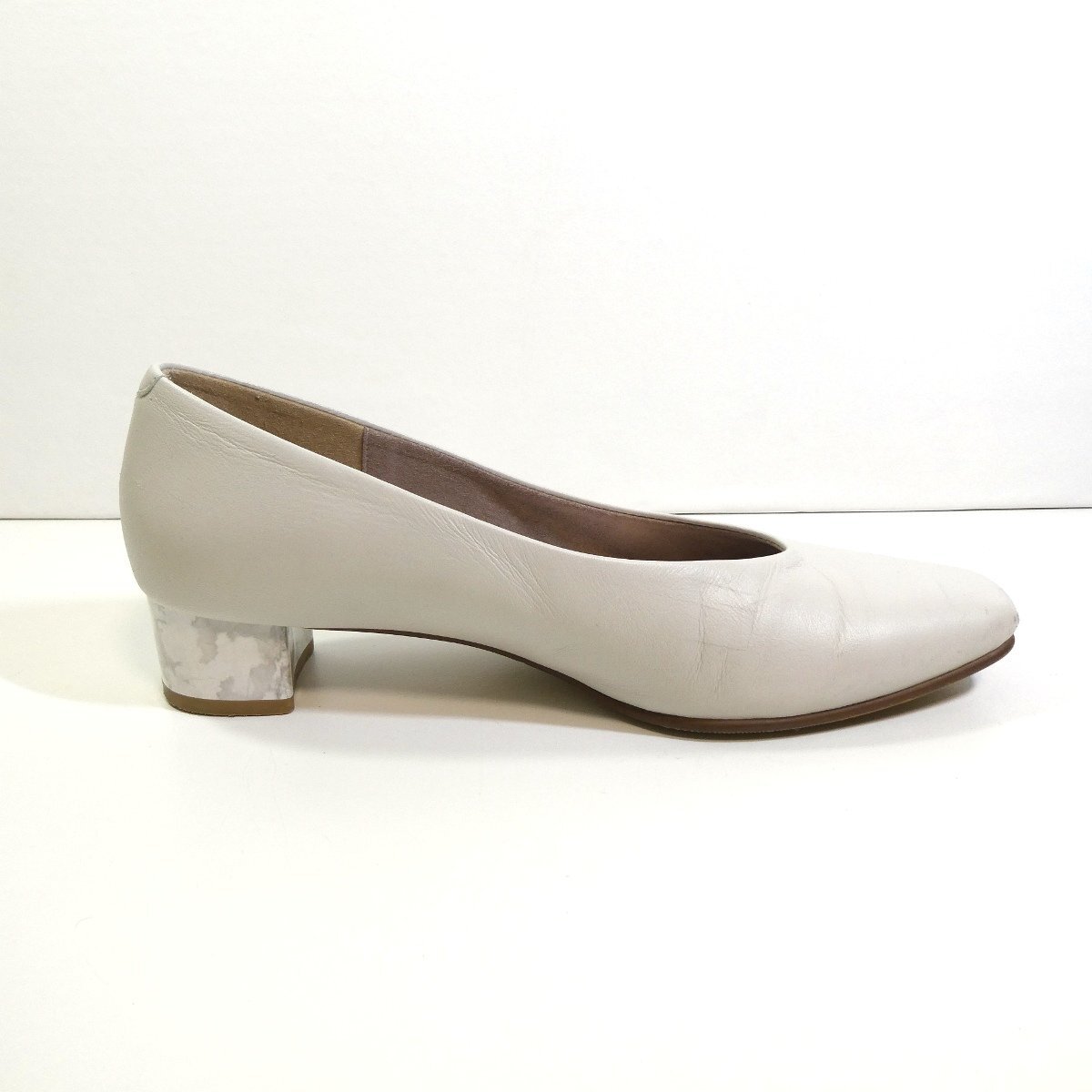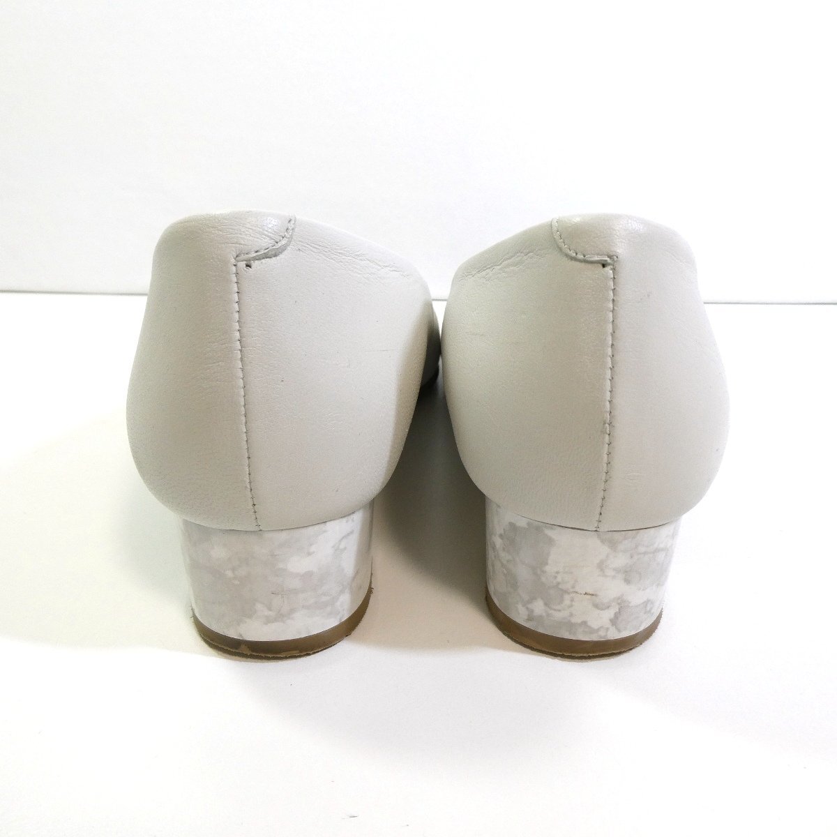 マーブル調のヒールがお洒落なパンプスです。