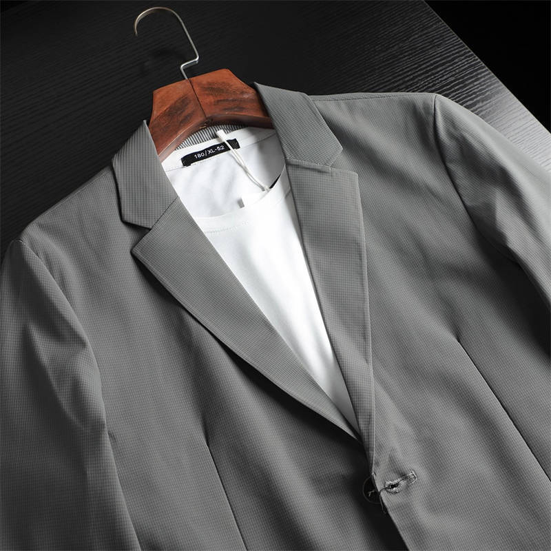 T1627-XL灰 新品 シアサッカー 4WAYストレッチ サマーブレザー テーラードジャケット 防シワ 通気 薄手 春夏 メンズ クールビズ ブレザー