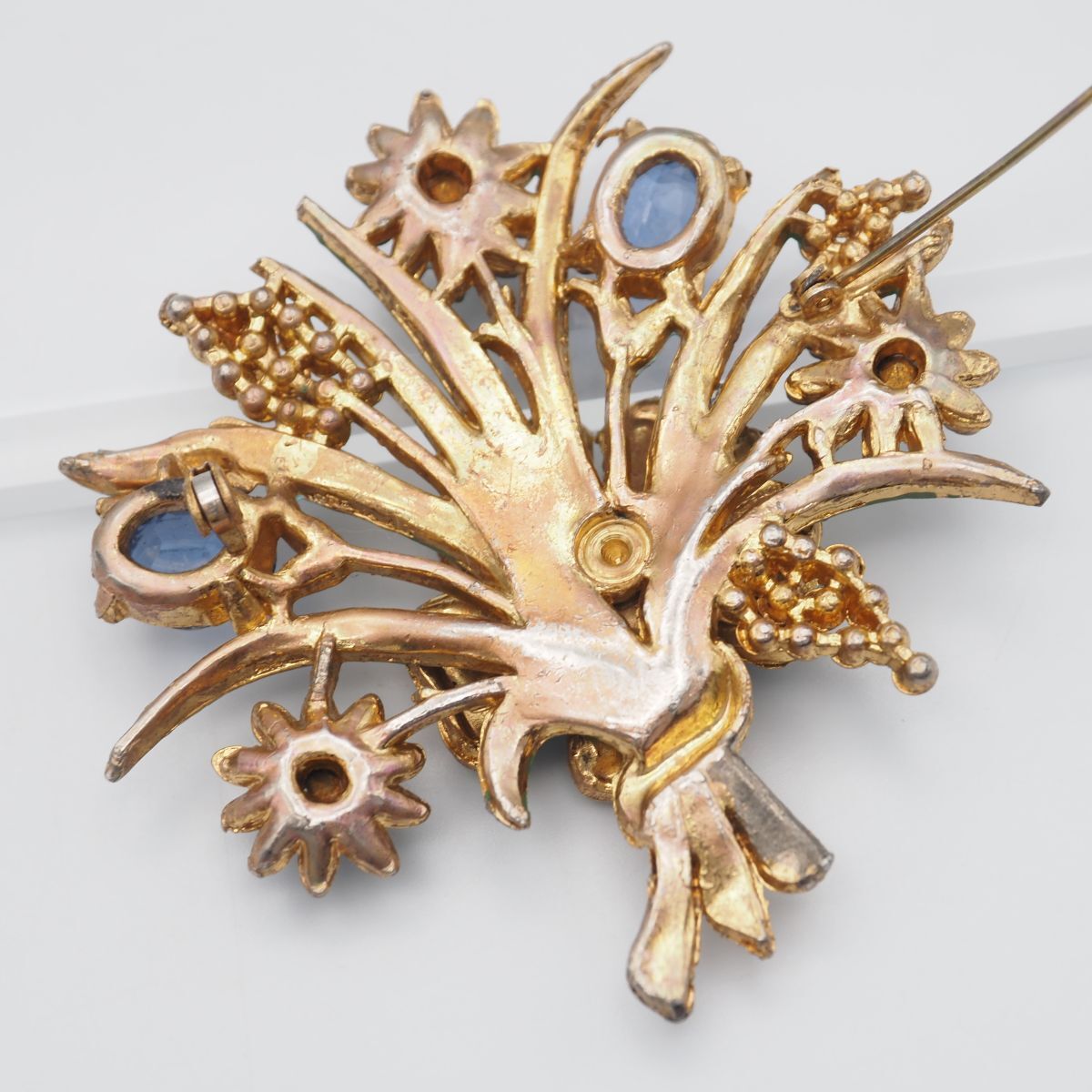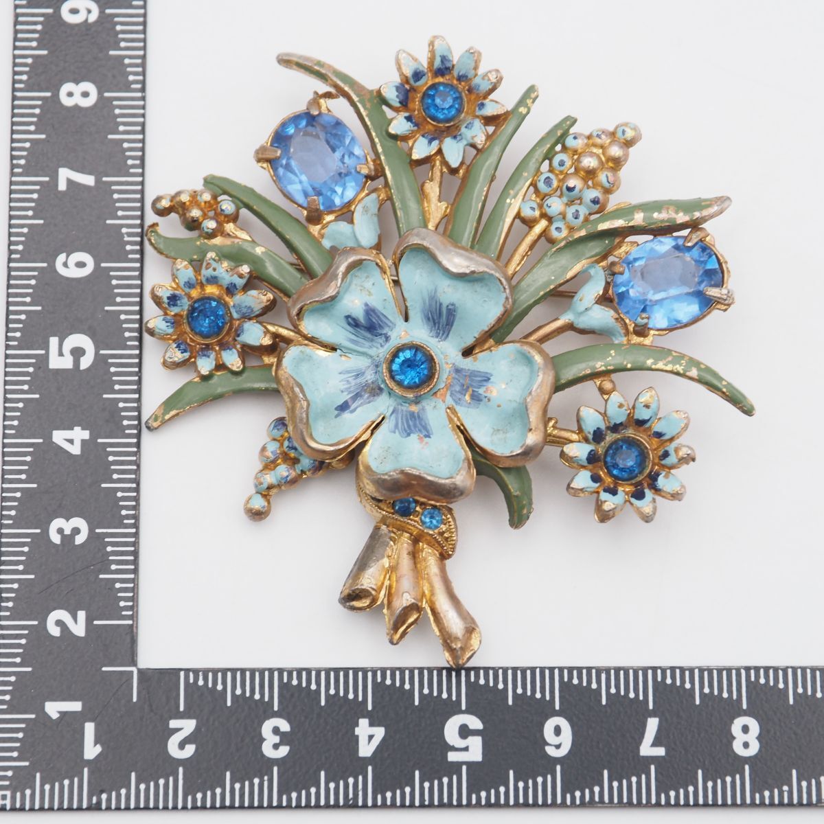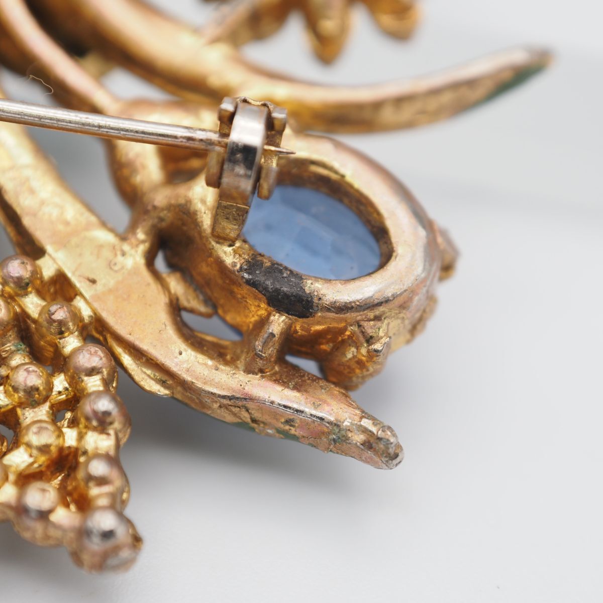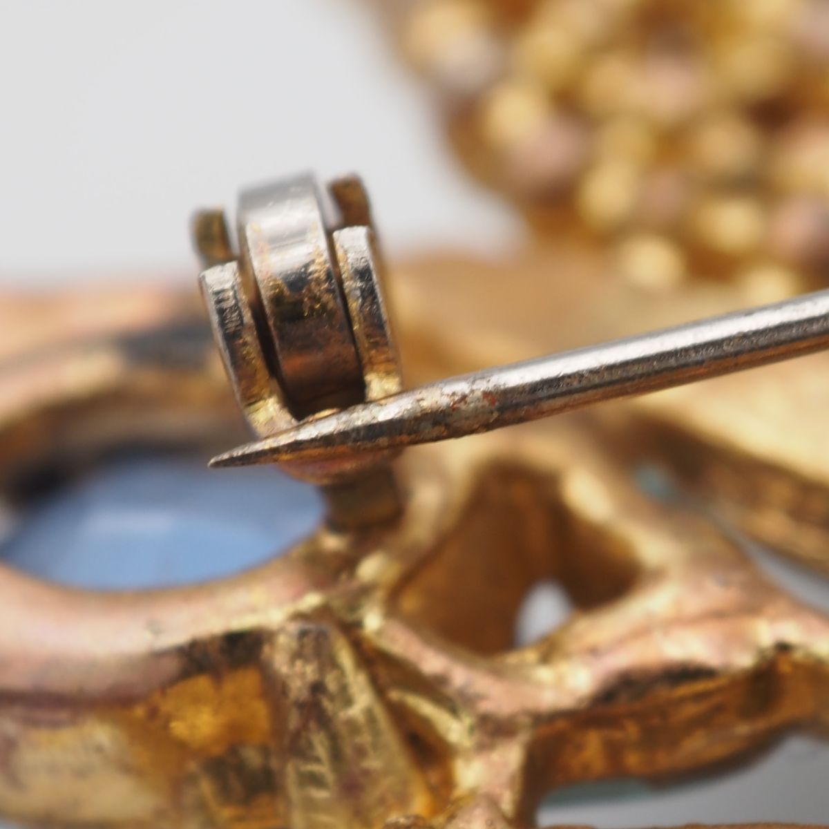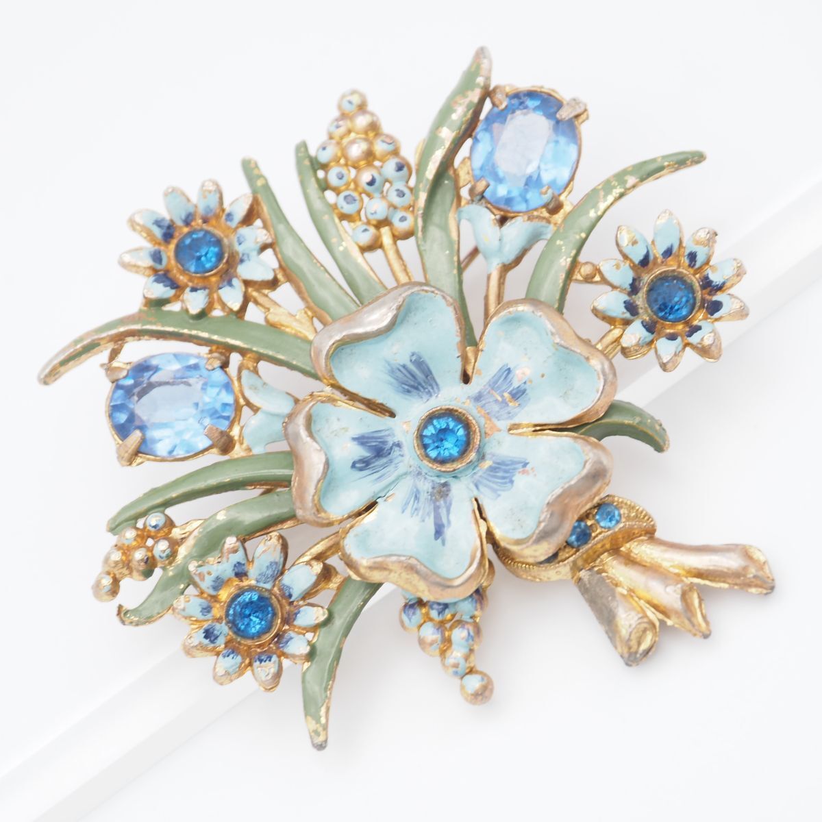 B506 ブローチ 大ぶり フラワー ブルーストーン風 ゴールド デザイン コスチュームジュエリー