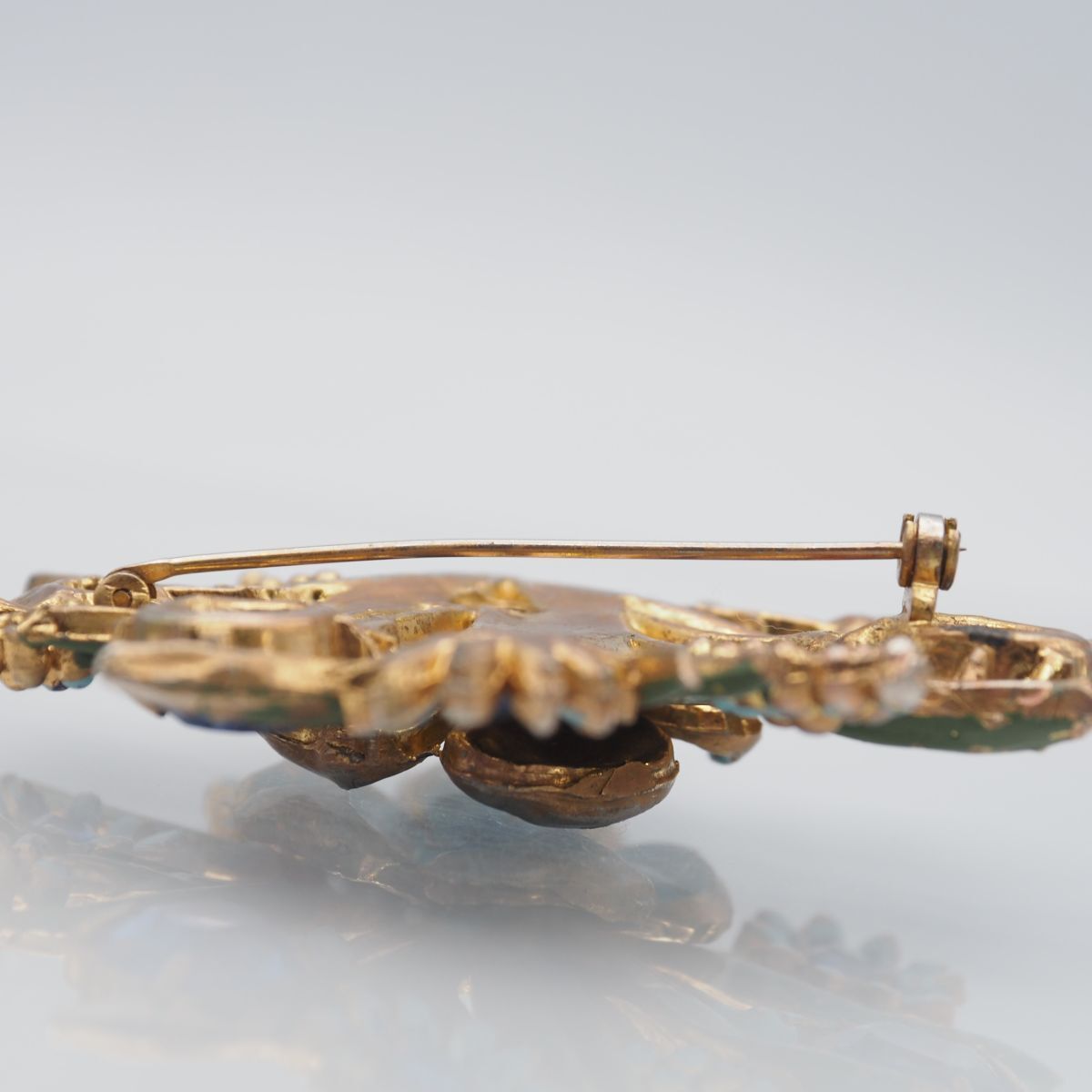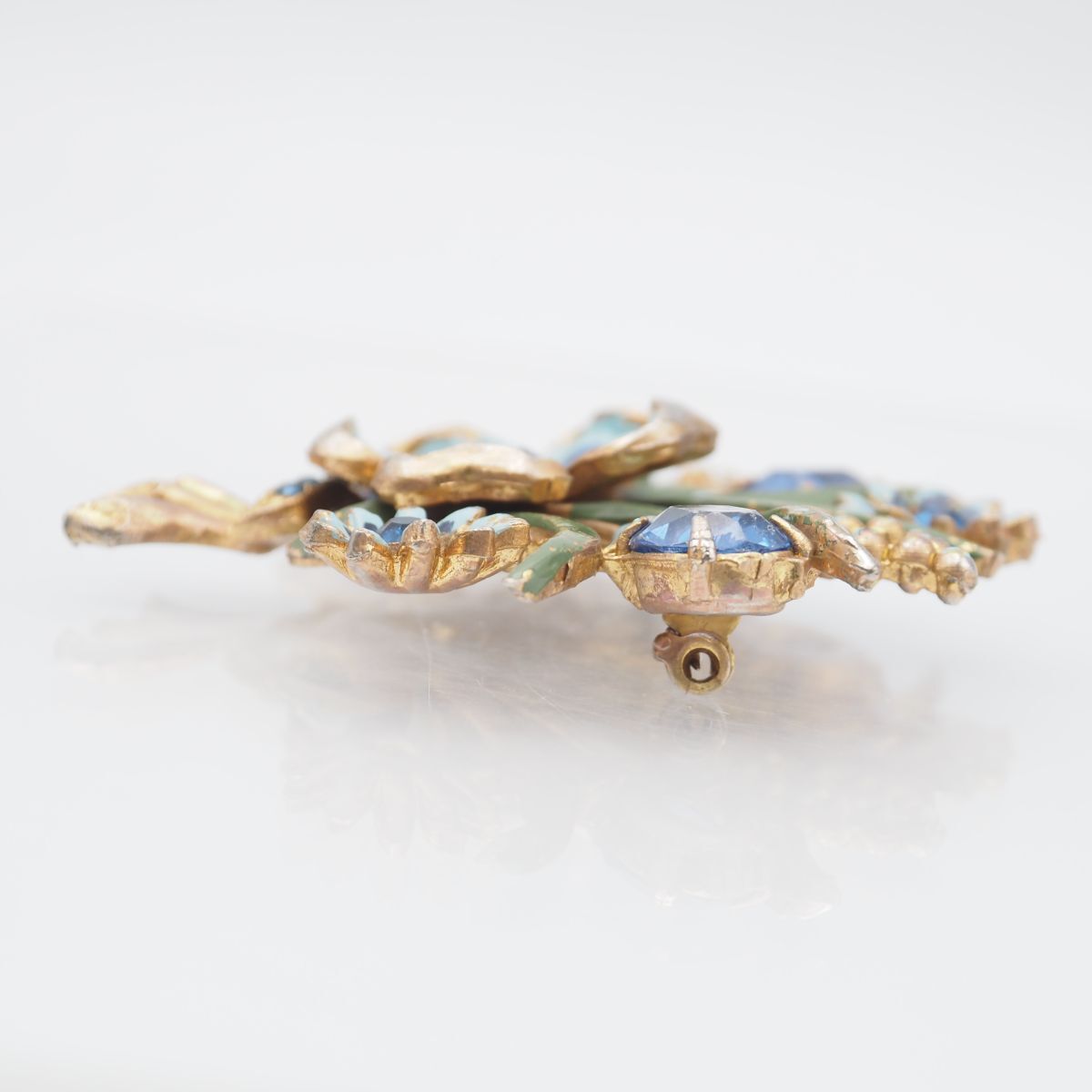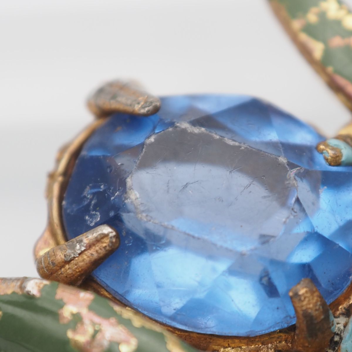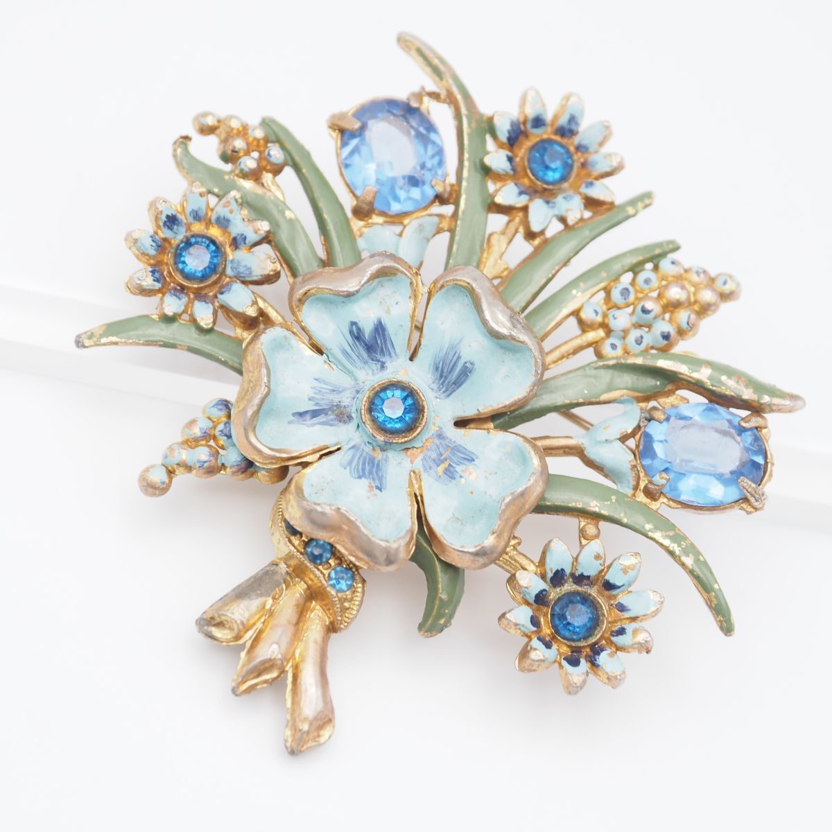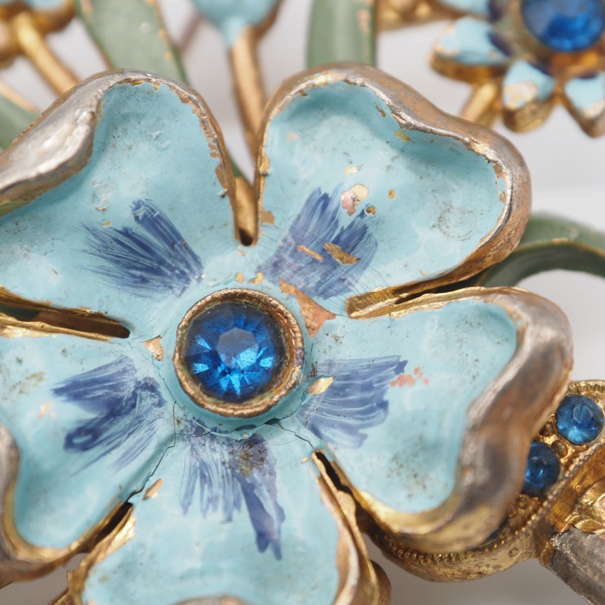 B506 ブローチ 大ぶり フラワー ブルーストーン風 ゴールド デザイン コスチュームジュエリー