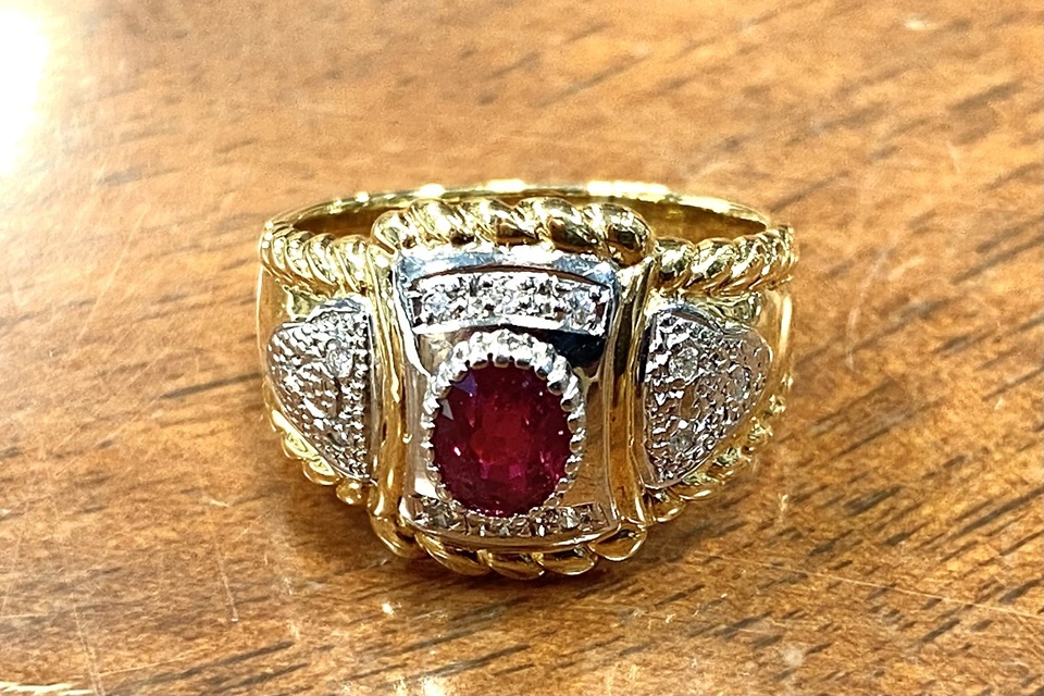 解説 | 主石が枠に覆われおり、装着感もツルツルで滑らか! 往年の職人の工夫を随所に感じる、ノスタルジックなハンドメイド作品。 |