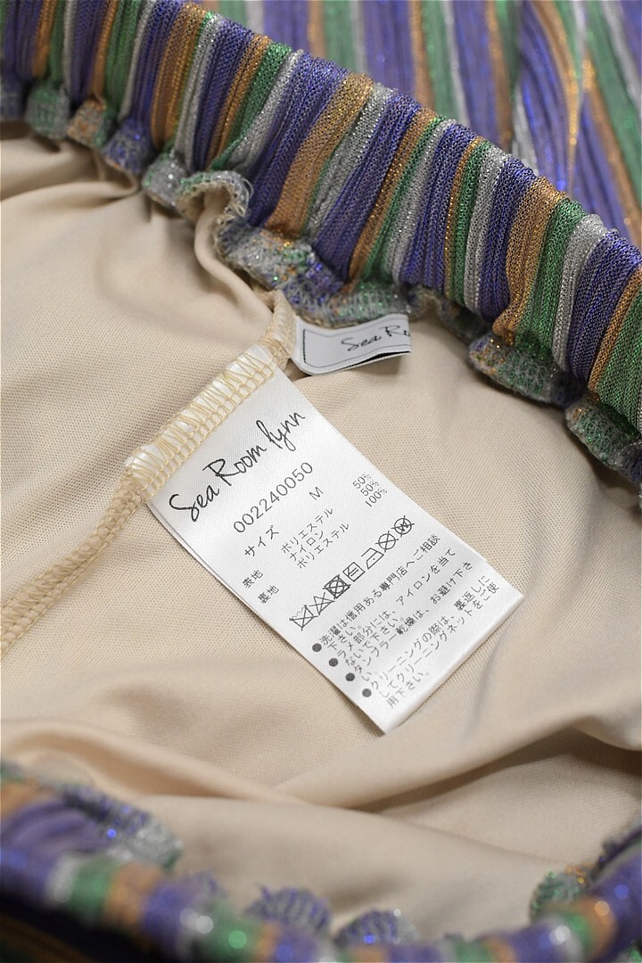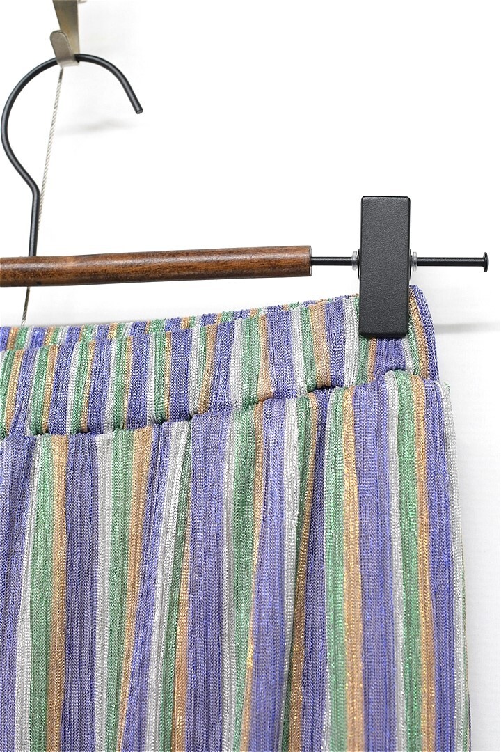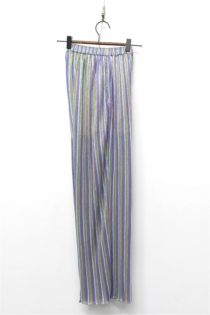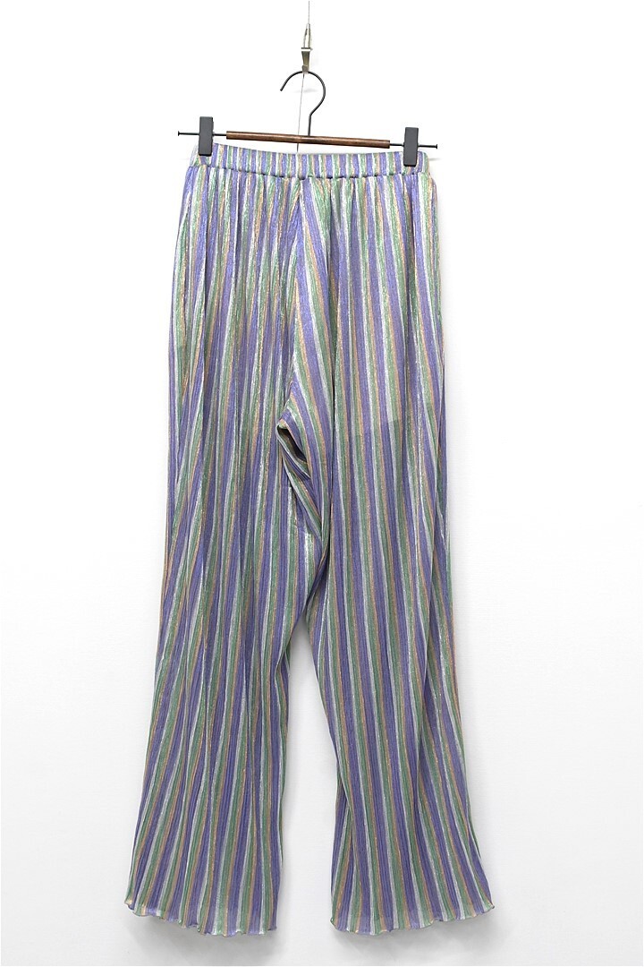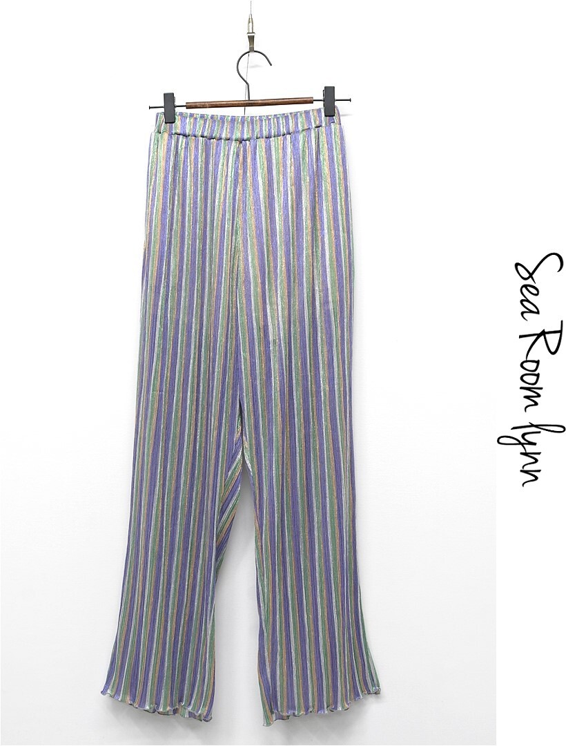 P375/美品 SEA ROOM LYNN シールームリン DIAMOND Fabric テーパードパンツ イージーパンツ ストライプ シワ加工 ウエストゴム M 光沢 紫