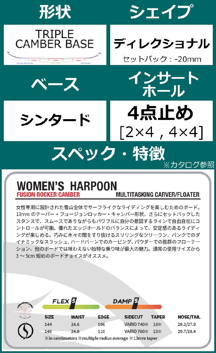 【即納】 レディース スノーボード 板 型落ち NEVERSUMMER W's HARPOON 144cm 24-25 ネバーサマー パウダーボード ダブルキャンバー