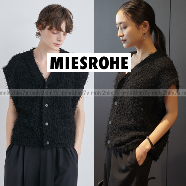 【VERY】【STORY】掲載【MIESROHE ミースロエ】チュールフラッフィーニットベスト ブラック黒 ノースリーブカーディガン Vネック