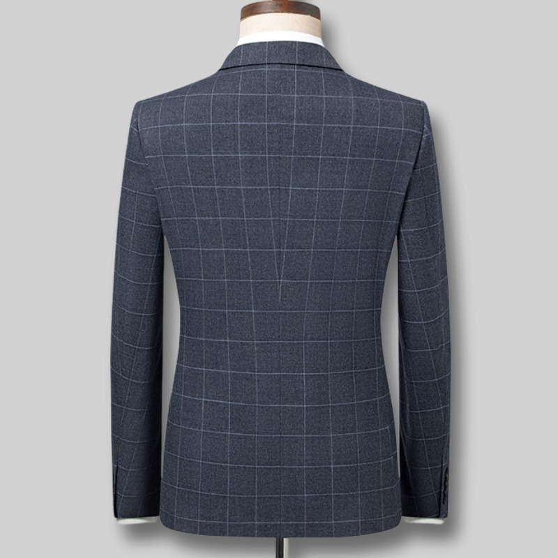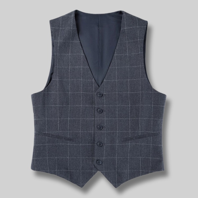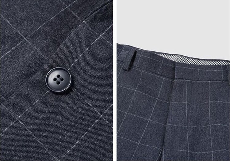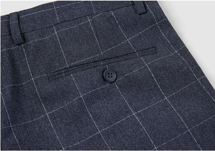 P768-M 新品 ウール31% ベスト付きスーツ 3ピーススーツ メンズ 格子柄 ビジネス セットアップスーツ ウエスト調節可能 スラックス/青灰