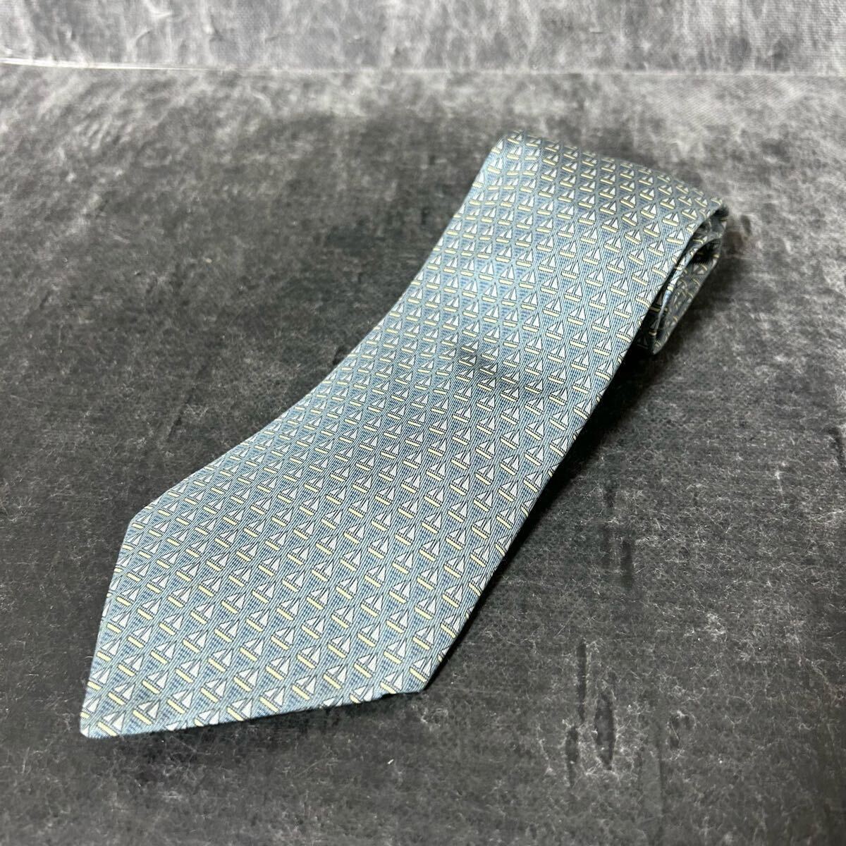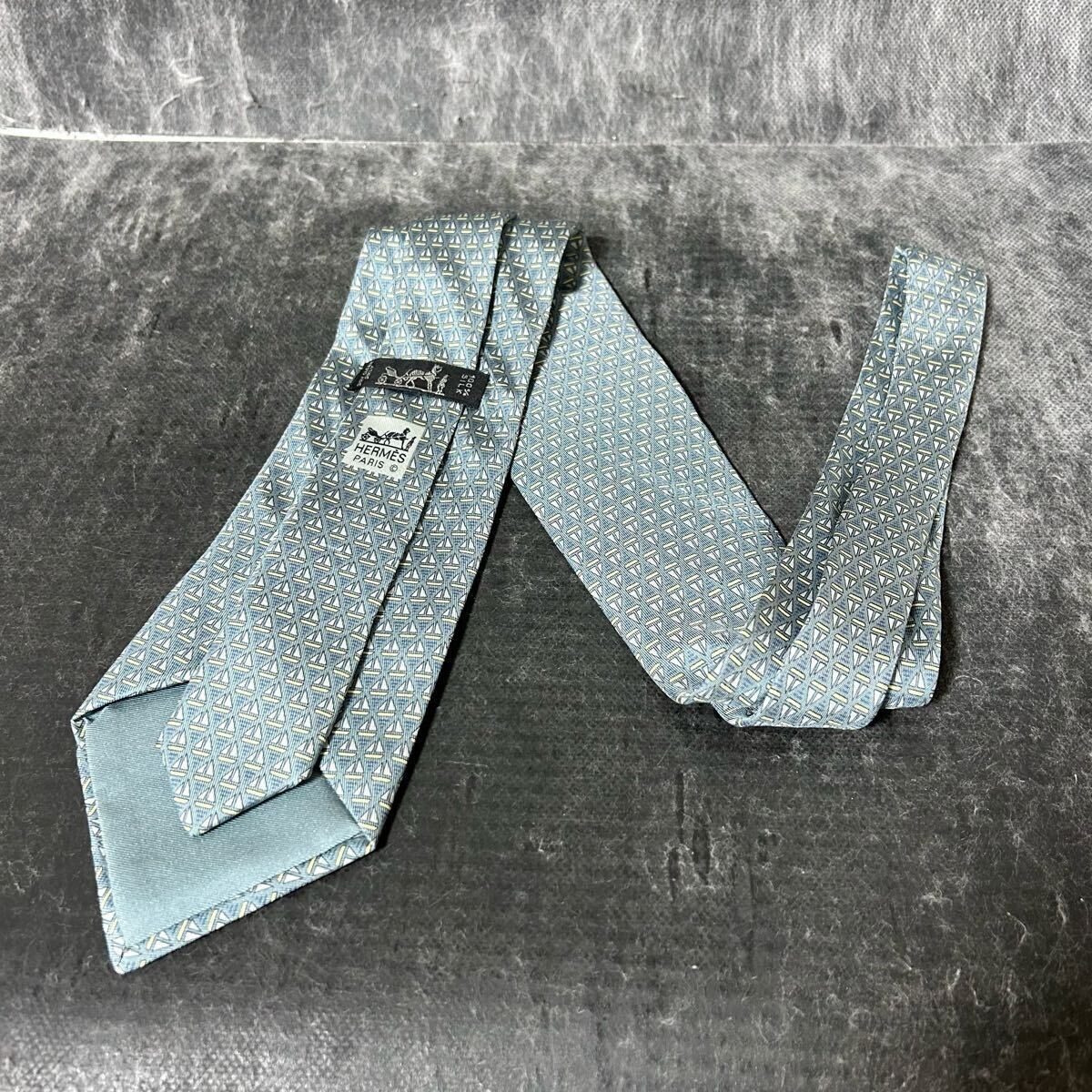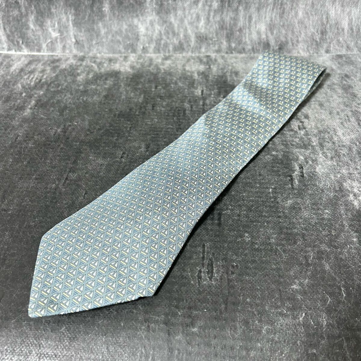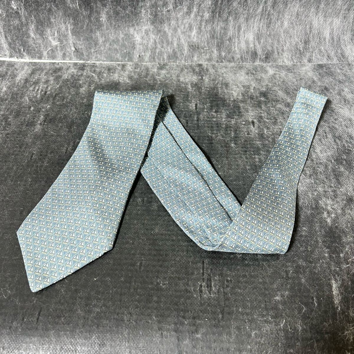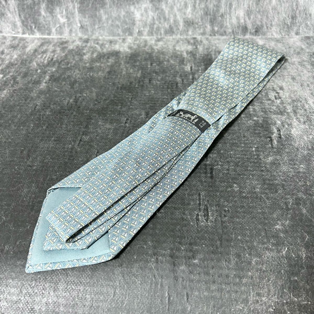 HERMES エルメス  ネクタイ 総柄  シルク100 幾何学模様 青緑 *AU