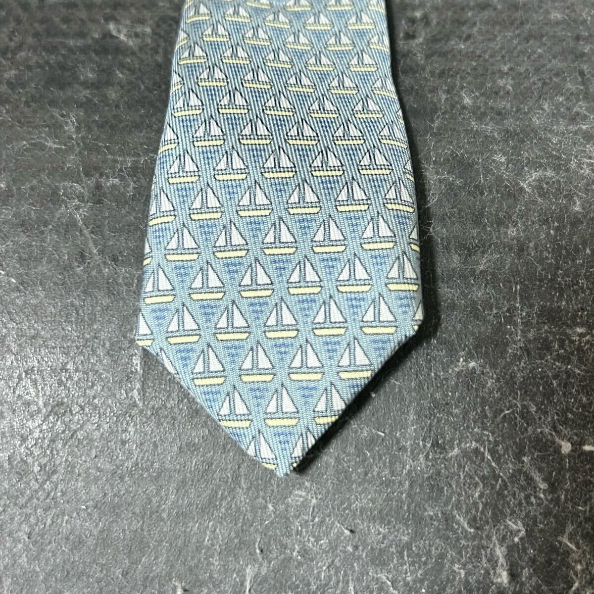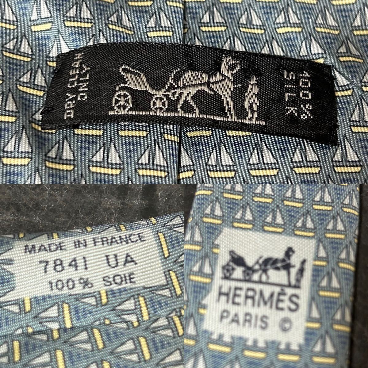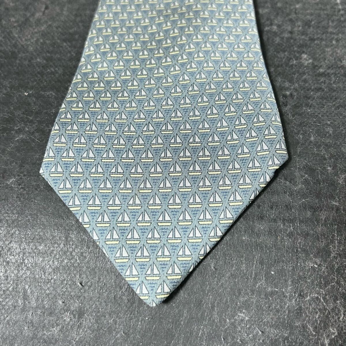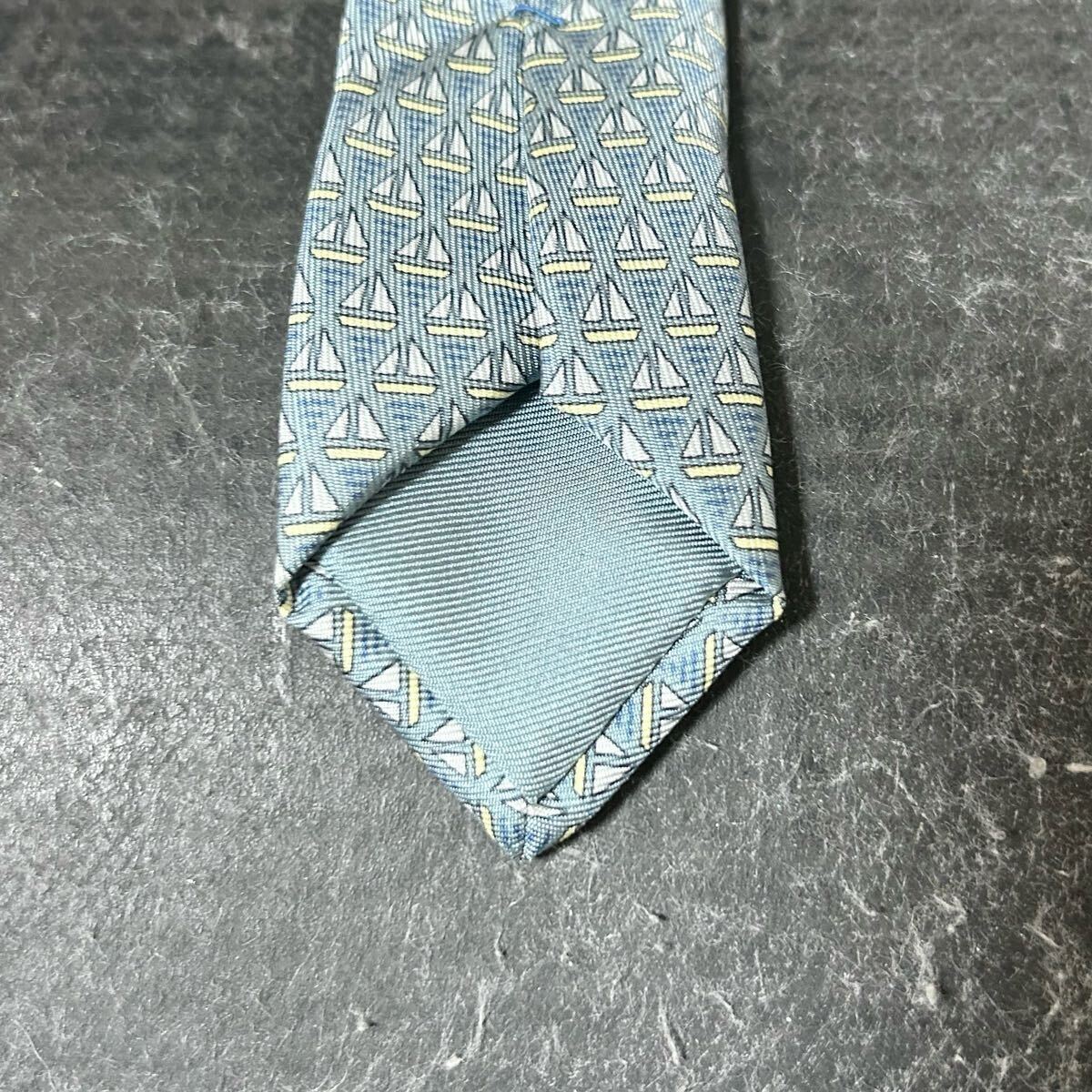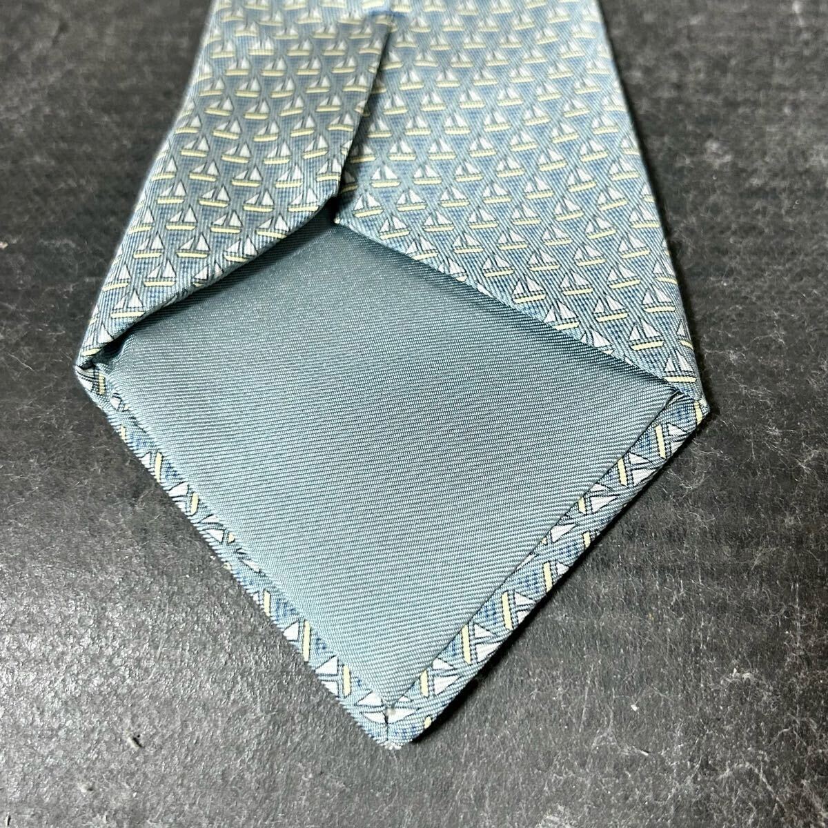 HERMES エルメス  ネクタイ 総柄  シルク100 幾何学模様 青緑 *AU