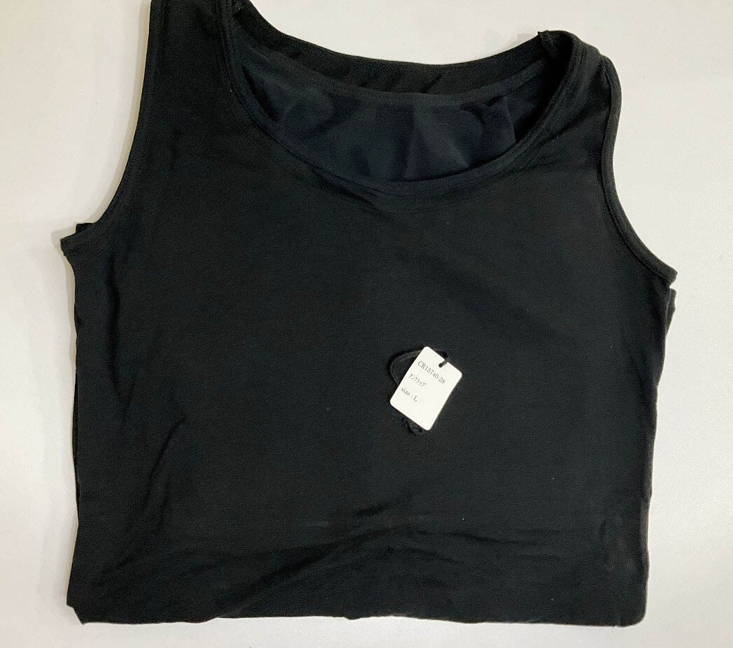 <再値下げ>CR15740-28 IBK⑦【特価】新品 さらしタンクトップ L ブラック ストレッチ 綿混 シンプル レディース