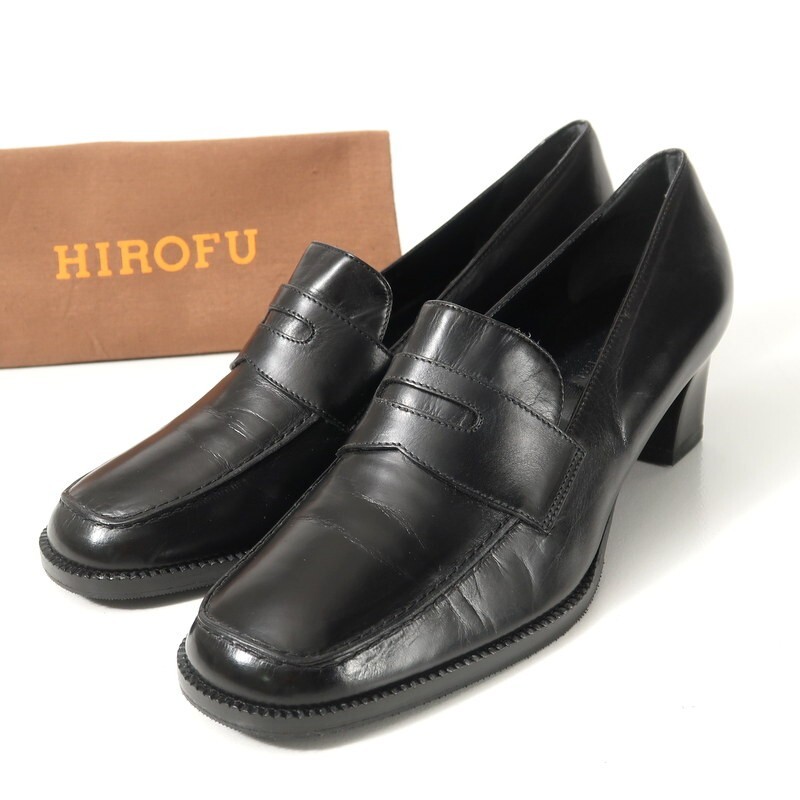 | MI0380*イタリア製 HIROFU ヒロフ 24cm レザーパンプス ローファー 靴 ブラック | |||