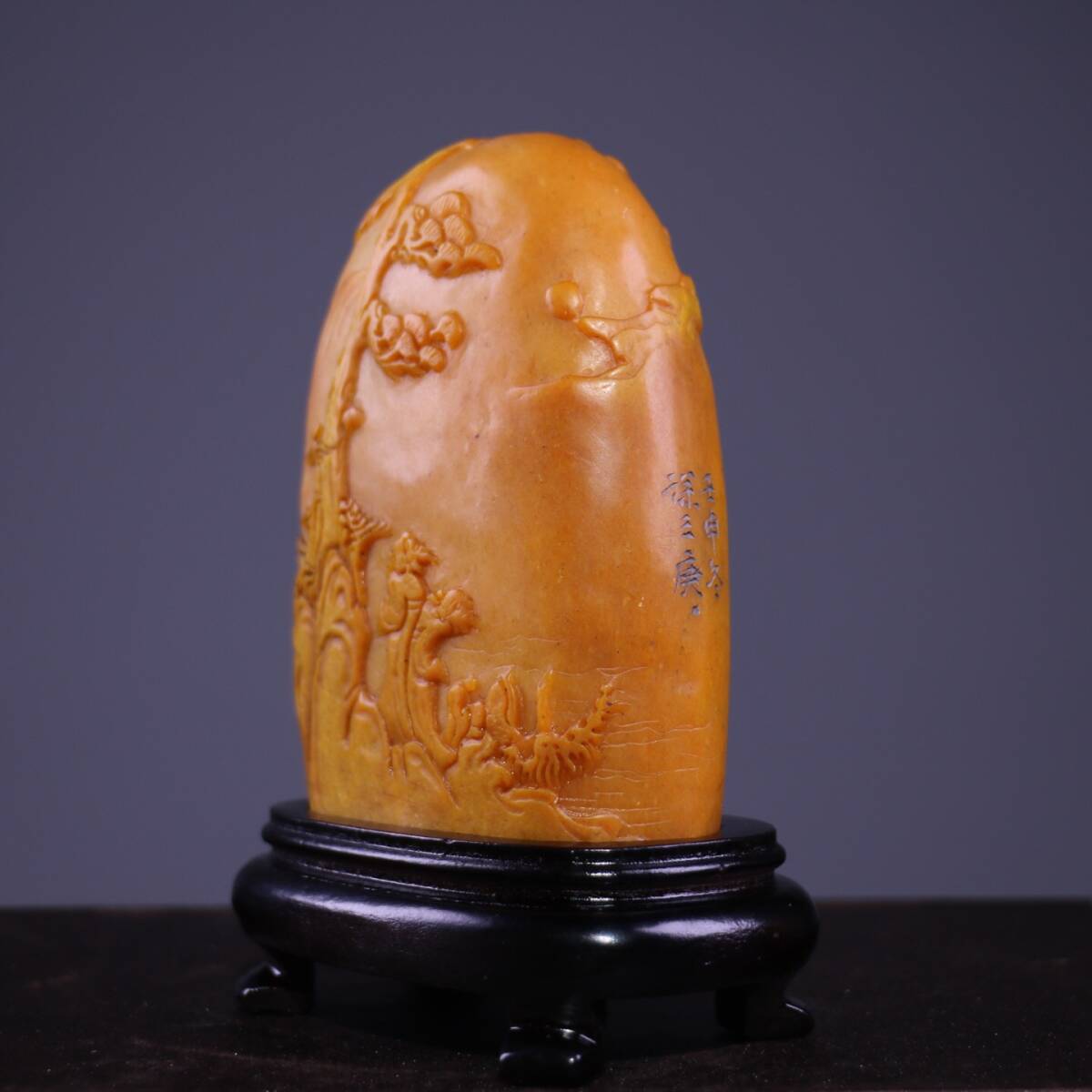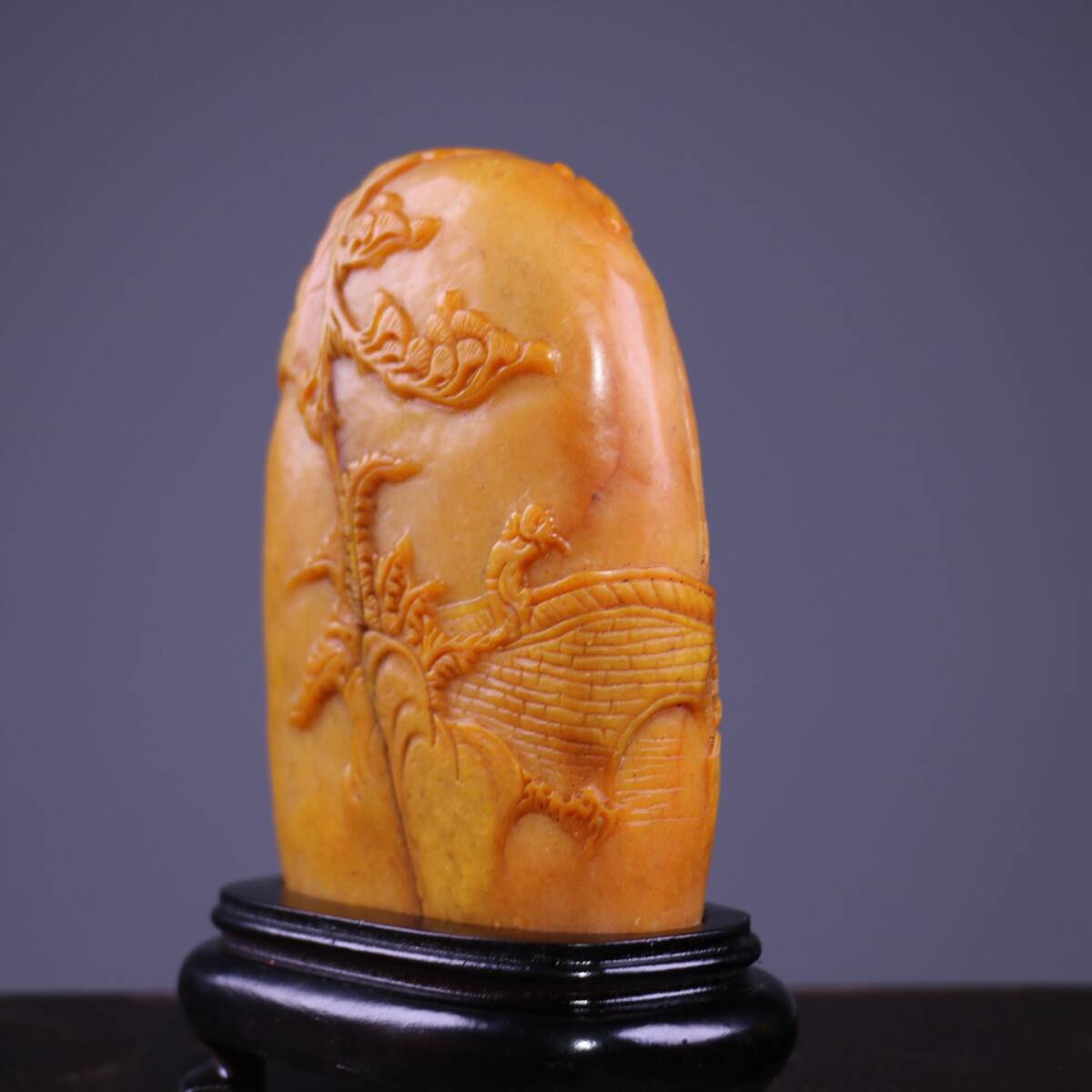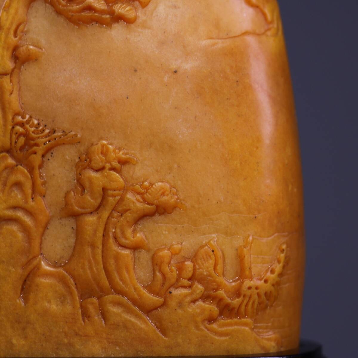 【超珍館蔵】寿山石 田黄石 細密彫 觀滄海紋印章 印章 印鑒 文房具 書道品 古賞物 古董品 古美術品 時代物 旧家蔵出 稀少珍蔵品