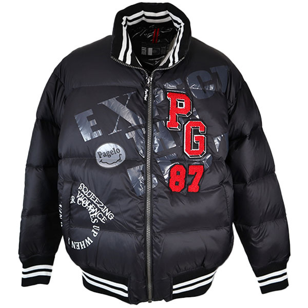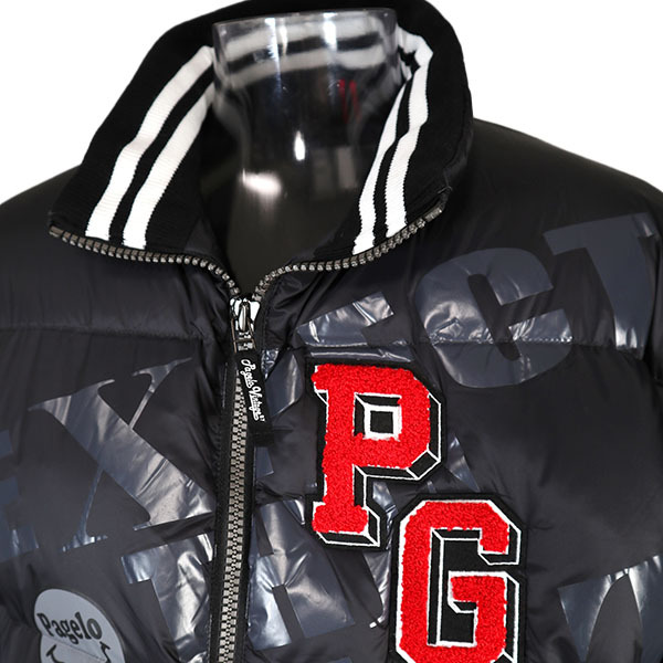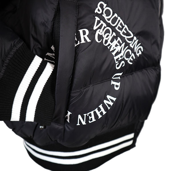 ■形状/ ゆったり大きめサイズのダウンジャケットです。 ロゴプリント&刺繍&エンブレムワッペンを付けたスタイリッシュなデザインに仕上げています。。 ポケットは表と内側に2ヶ所ずつあります。 |