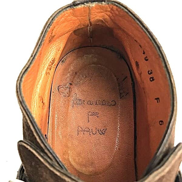 商品説明 | Santoni/サントーニ★スエード本革/チャッカブーツ/モンクストラップ【6F/24.5-25.0/brown/茶】Leather/Boots/shoes/Vintage◆bWB108-4 (ORIGINAL TITLE) ※商品情報について※ 上部に表示されております【アイテム】・【表記サイズ】などの各項目は、商品カテゴリ振り分けの際に自動で表示される大まかな情報となっており、商品タグなどに記載されている正式な情報と一部異なっている場合がございます。 大変恐縮ではございますが、ご購入の際は下記の詳細情報や商品画像のご確認をお願い致します。 ーーーー ◆SIZE:6(日本サイズ24.5-25.0程度) ※採寸は画像をご確認お願い致します。 ◆商品の状態◆ ■RANK:AB 状態ランク表 S新品 SA使用感がほぼ見られない美品、または未梱包の新古品 A使用感が少なく、比較的状態の良い中古品 AB使用感はあるが、気になる汚れ・傷みのない一般的な中古品 B使用感や汚れ、使用に支障のない傷みのある中古品 C目立つ汚れや傷みのある中古品 D/E補修が必要なジャンク品 状態詳細 古い品の為、多少の経年劣化、色ムラはございますが、着用に難のあるダメージ等は特に見あたりません。 ※保管期間が長いのでお手数をおかけしますが、着用前にクリーム・ブラッシングなどで革のメンテナンス・お手入れをお願い致します。 また、ヒールの磨り減りはあまりなく、まだまだ履いていただけます。 (コンディションに関しましては当方の主観による判断になります。御不明な点がございましたら必ずご質問願います。慎重にチェックは行っていますが、汚れ/傷のわずかな見落とし等は中古品という事でご了承下さい。) <BUZZBERG> |