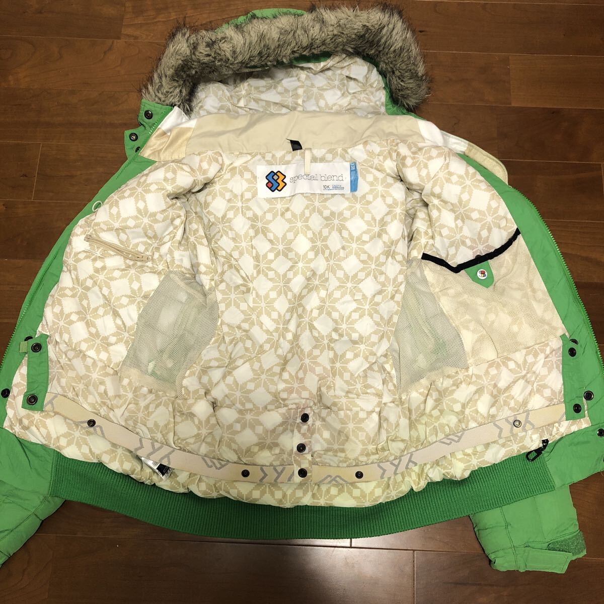 スペシャルブレンド ウェア ダウン グリーン レディース M L ショート ダウンジャケット フード ロゴ スノーボード スキー
