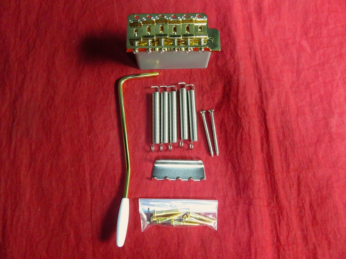 ◆内容物:トレモロ本体、アーム、マウントスクリュー ×6、スプリング ×5、スプリングホルダー、ホルダー止めスクリュー ×2、レンチ、取扱い説明書