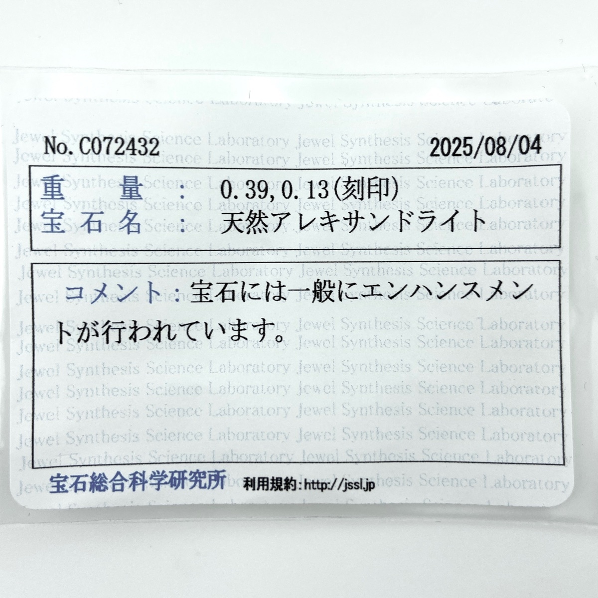 トップ:Pt900、チェーン:750 アレキサンドライト:0.39ct、メレダイヤ:0.13ct 中古品の為、若干のキズや汚れがございます。 |