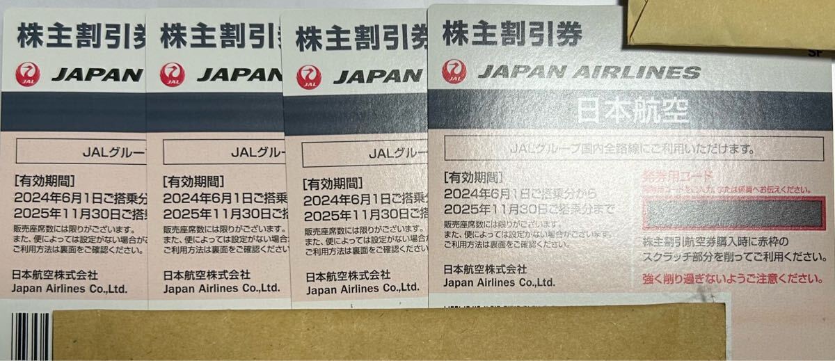 番号通知のみ!JAL株主優待券 4枚セット