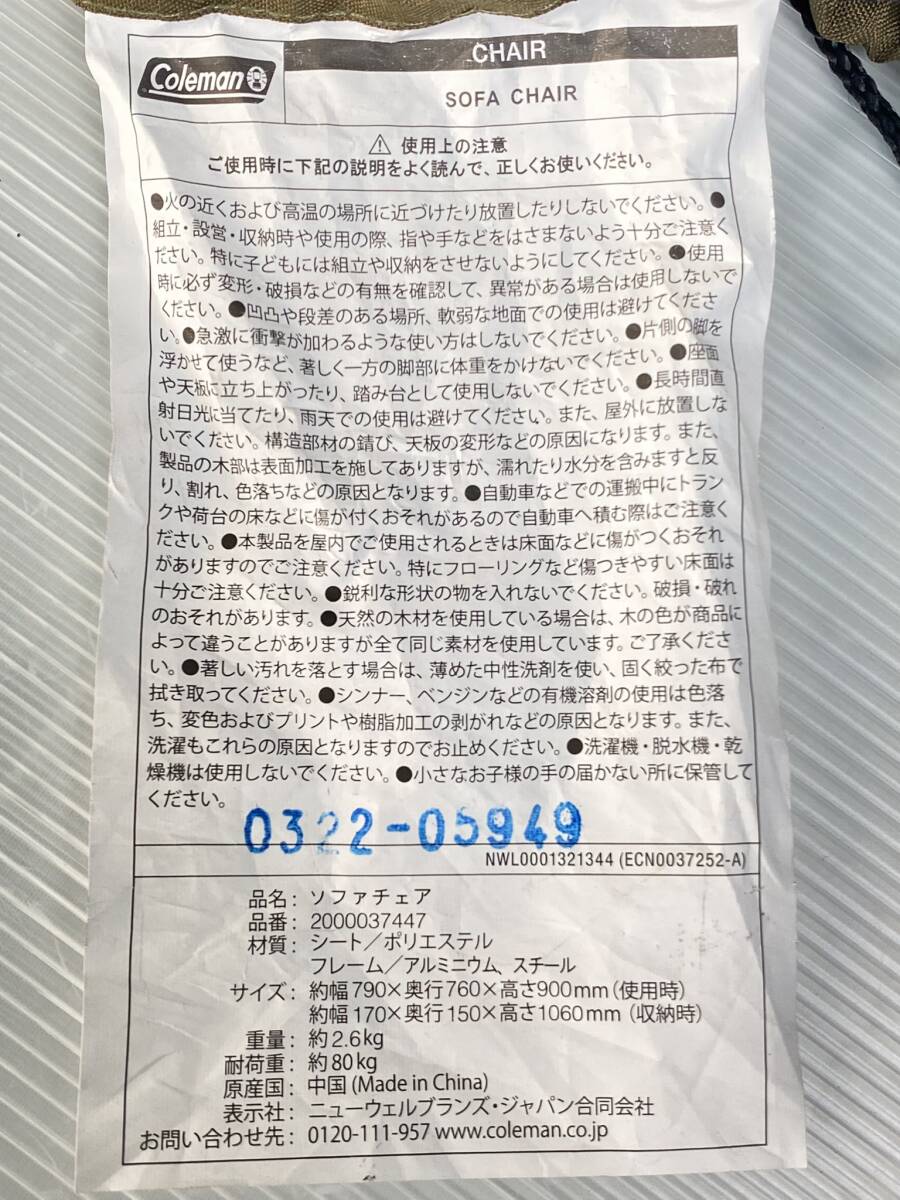 2508-148 Coleman コールマン ソファチェア 2000037447 アウトドア キャンプ 折りたたみ