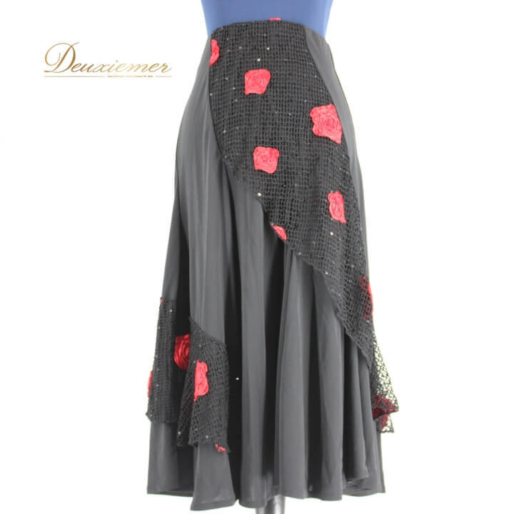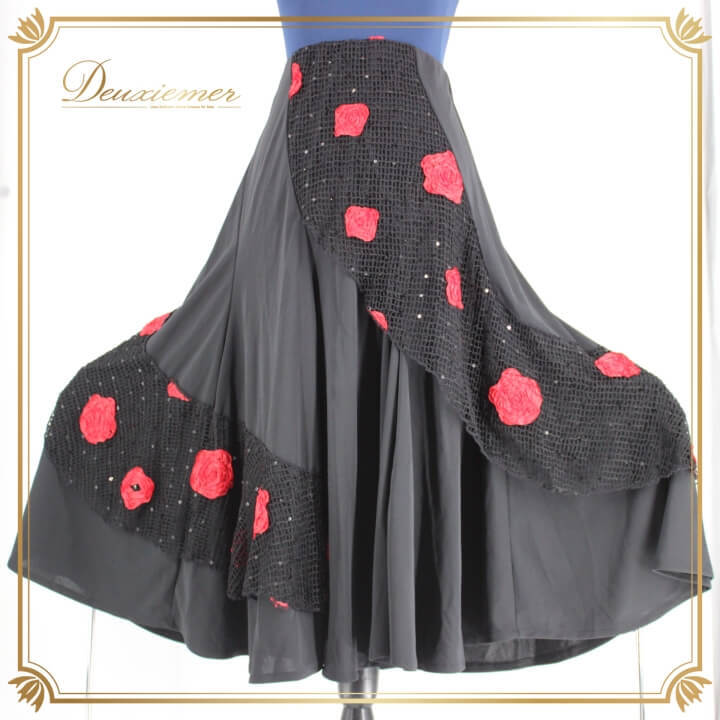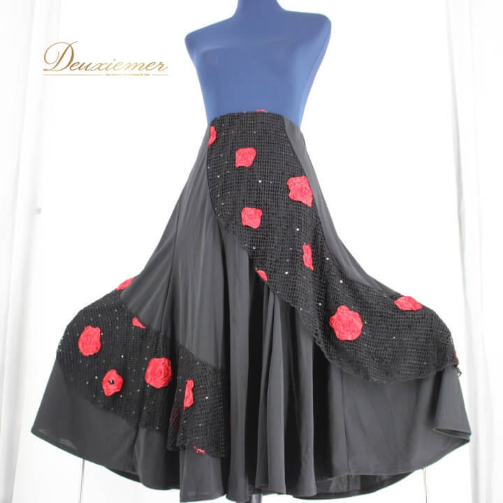 | 【商品名】社交ダンス衣装 スカート 【サイズ】 平置き実測:総丈約77cm、ウエスト約32cm~ ※実測の為、多少の誤差はご容赦願います 【仕様】 ・ウエストゴム仕様 ・伸縮性有り ------------------------------------ 【ポイント】 ▽ブラック×レッド ▽立体的な花柄デザイン ▽スパンコール付き ------------------------------------ 【撮影時使用トルソー】 種 類:女性用トルソー9号 (一般的に使用されるサイズです) サイズ:肩幅約37cm、バスト約88cm、ウエスト約66cm、ヒップ約89cm |