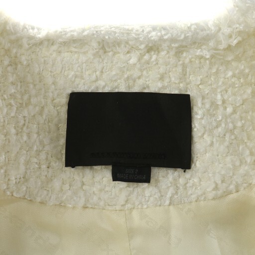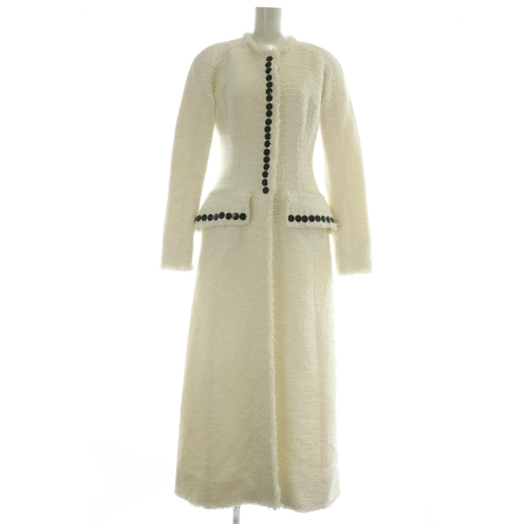 アレキサンダーワン ALEXANDER WANG ノーカラーコート アウター ウール混 ロング 肩パッド 2 S 白 ホワイト 黒 ブラック