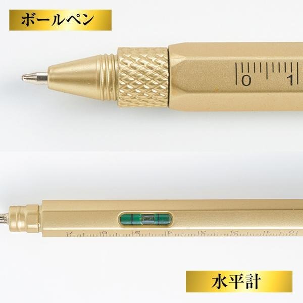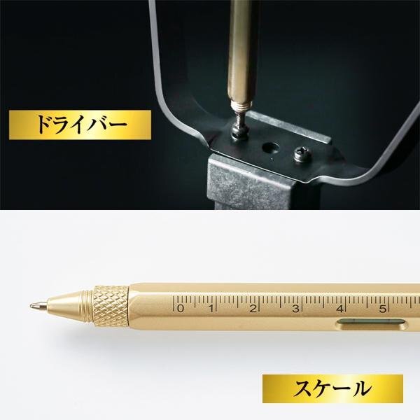 ペン 多機能 1本で5役 ボールペン 定規 ものさし スマホスタンド ドライバー 金色 マルチ 文房具 プレゼント 送料無料 50K◇ ツールペン金