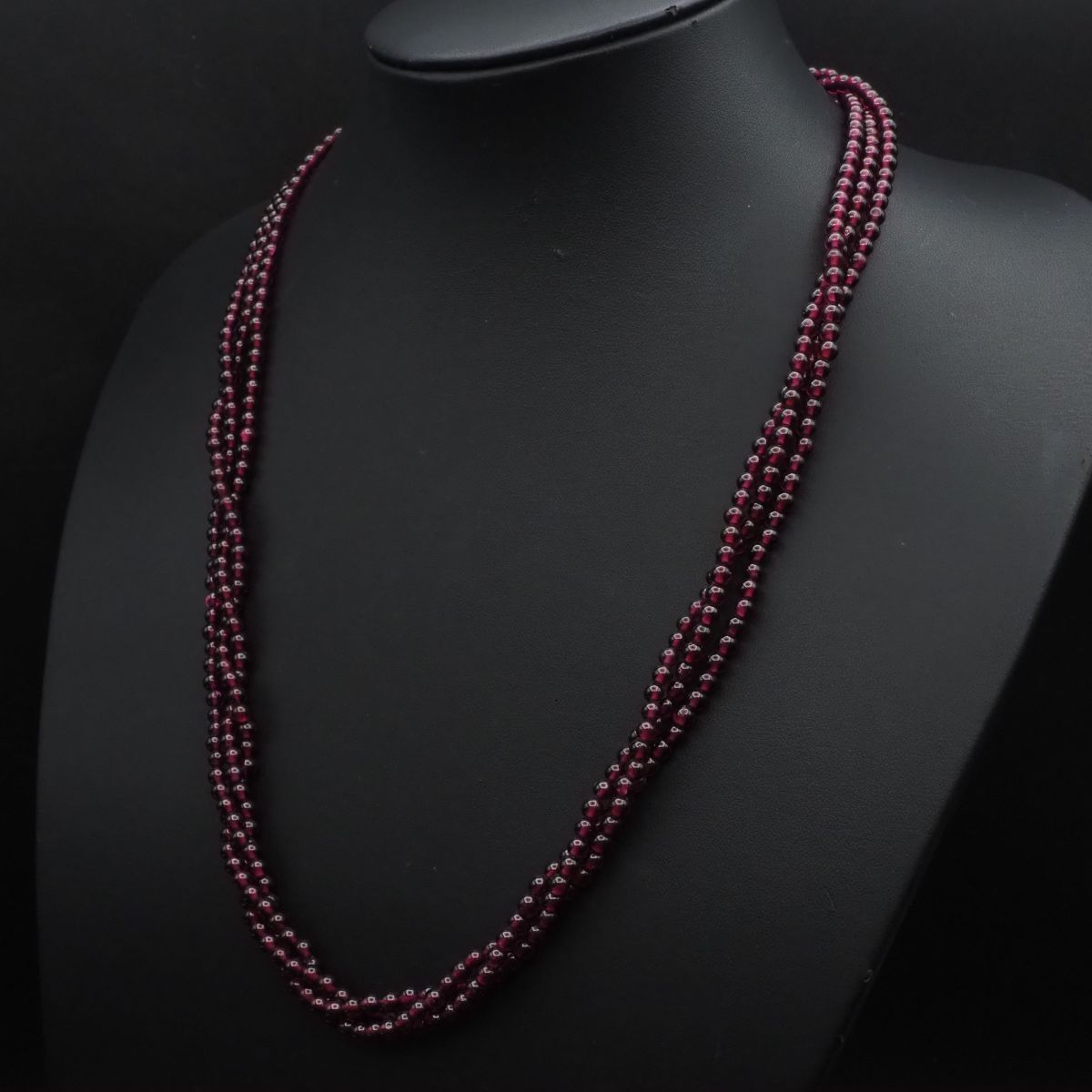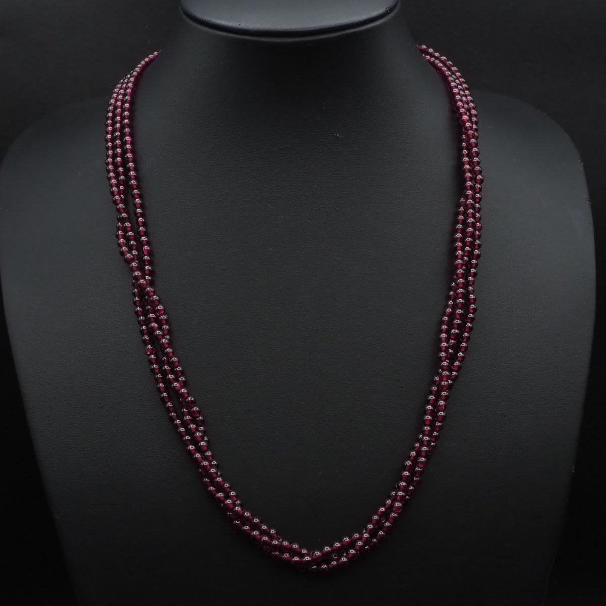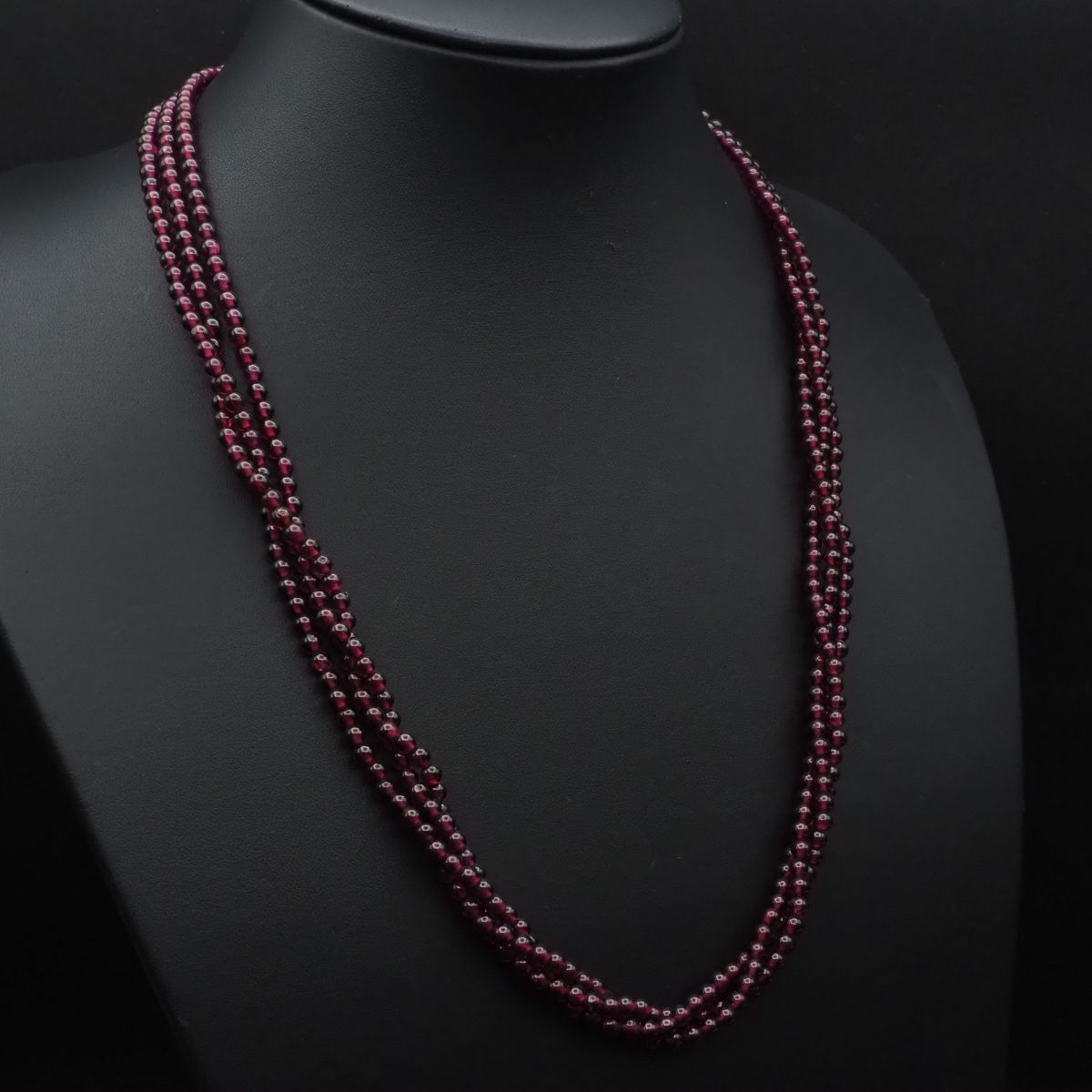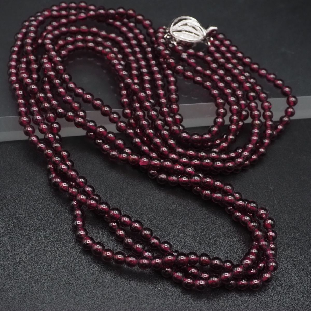 F043 ガーネット SILVER刻印 ネックレス 3連 デザイン シルバー 1月誕生石