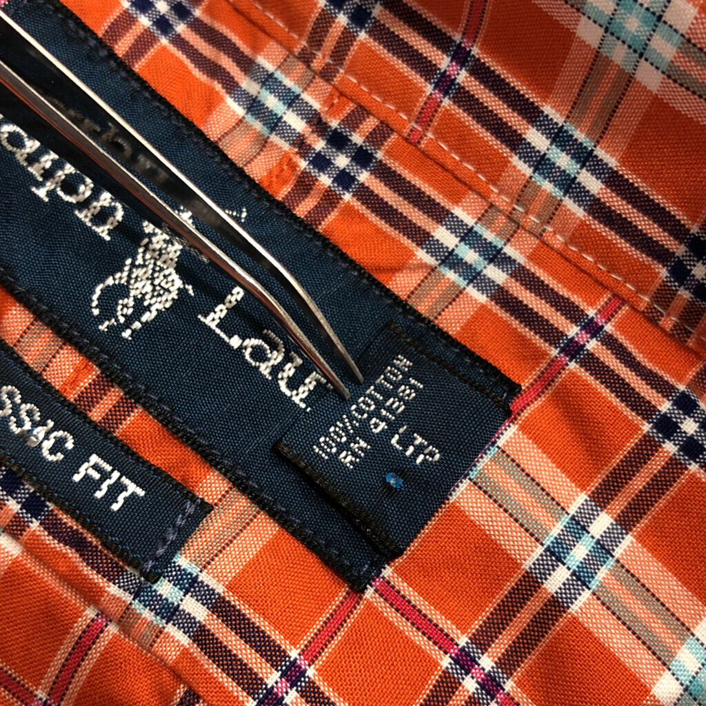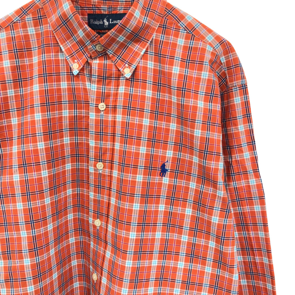 [商品管理番号] V1606 [ブランド] RALPH LAUREN/ラルフローレン [サイズ] L [実寸サイズ] 肩幅:約50cm 着丈:約83cm 身幅:約65cm 袖丈:約68cm [主な素材] 表地 : コットン [色] オレンジ [仕様] ボタンダウン チェック [状態] | |||