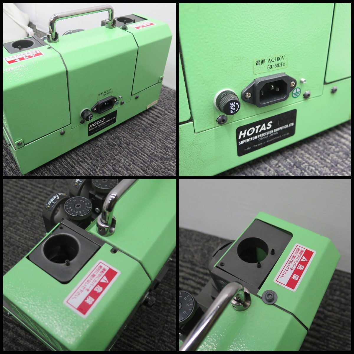 ![]() △HOTAS/ホータス ドリル研磨機の出品です。 ○ドリル研磨機 メーカー:HOTAS/ホータス モデル:DG-1SF 電源:AC100V 50/60Hz 外形寸法(約):幅290mm×奥行170mm×高さ210mm 重量:約12.5kg 砥石回転動作確認済です。 細かな擦れ汚れ等はございますが 全体的に美品のコンディションに思います。 状態については画像をご参照ください。 付属品は画像の物が全てとなります。 画像にない部品は欠品とお考えください。 ご不明な点がございましたら、お気軽にお問い合わせ下さい。 ●発送方法について 佐川急便140サイズ/20kg予定(元払) (※沖縄・離島地域除く) ○送料について 地域別料金表(140サイズ) ◆落札価格に対して消費税をお預かりいたしますのでご了承ください◆ また、店舗への直接のお引取りも歓迎いたします。 |