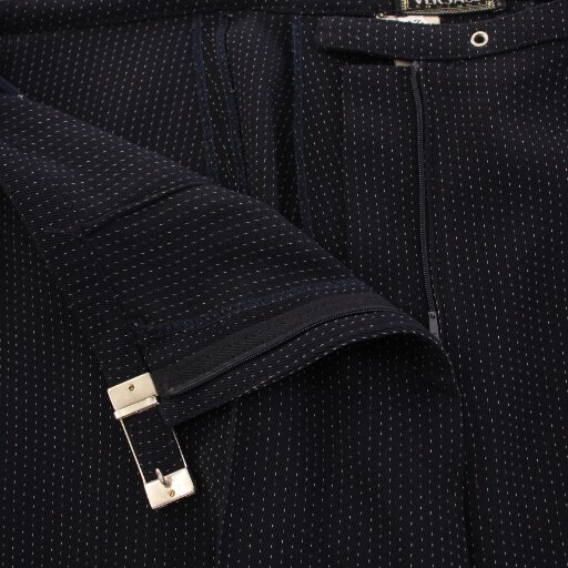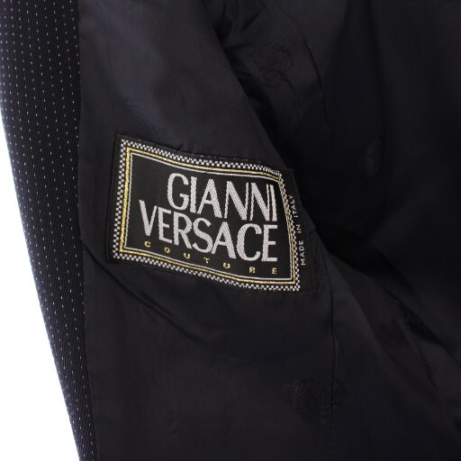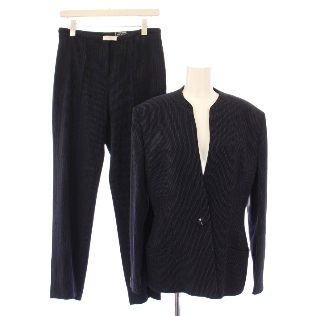 ジャンニヴェルサーチ ヴェルサーチェ ノーカラージャケット アウター シングル 総裏地 スラックスパンツ ジップフライ 総柄 ウール 黒