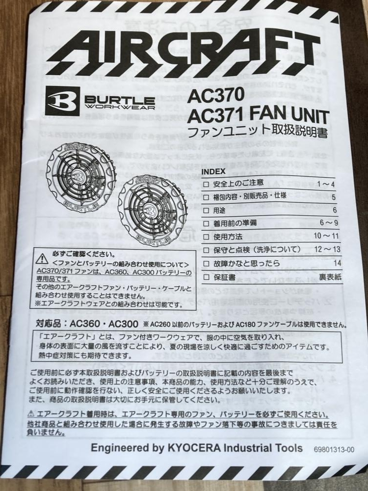 バートル ■商品名 空調服用ファン ■型番 AC371 |