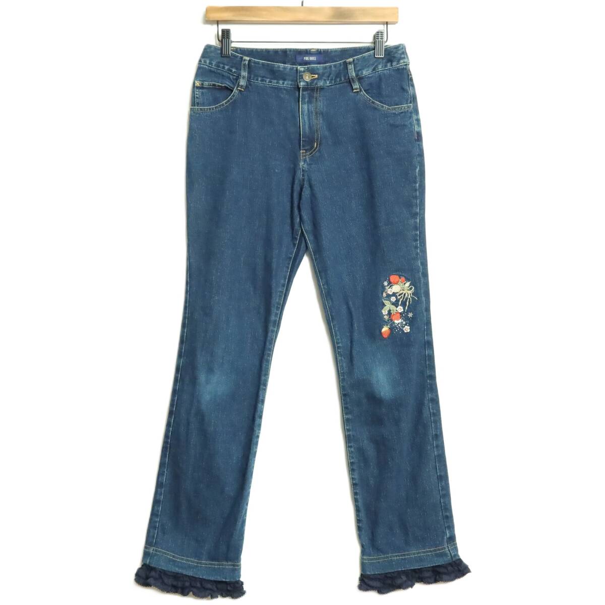商品説明 | 【実寸約】ウエスト76ヒップ88股上26股下70太もも幅24.5(cm) 【サイズ表記】 M 【素材】 綿95ポリウレタン5 【状態】普通の使用感のあるお品物 【デザイン】ネイビー系 ストロベリーの刺繍がキュートなデニムパンツです。 裾から綿ローンの段々フリルがのぞくデザイン♪ 厚手/無地/ポケットあり |