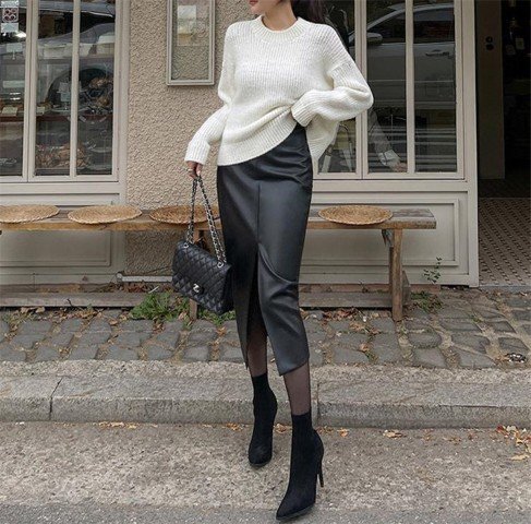 ロングスカート PUレザー タイト シンプル カジュアル レディース S ブラック