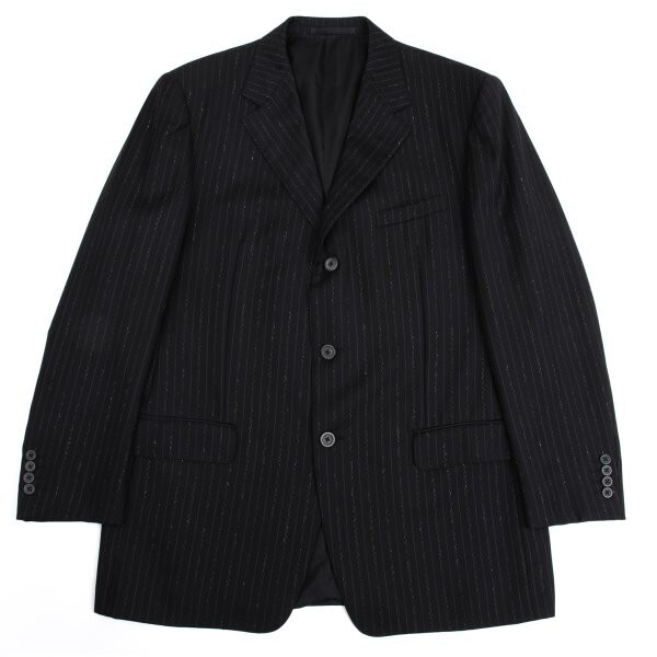 ジャンニヴェルサーチGIANNI VERSACE ウールストライプ織り3Bジャケット 黒54 |