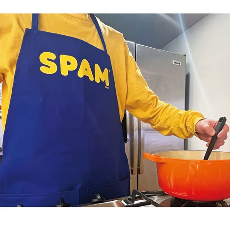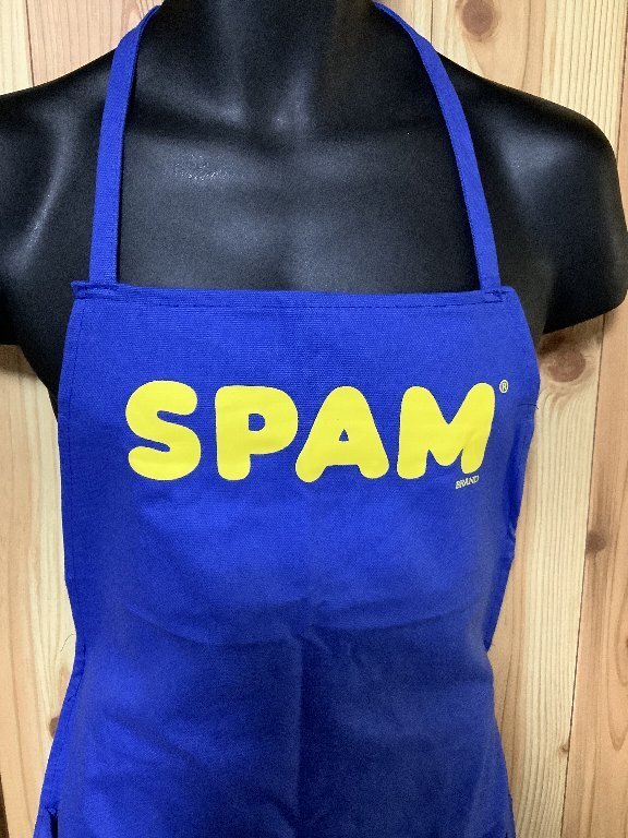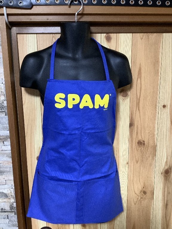 【232114】アメリカ人のソウルフードと言われている...【SPAM/スパム】のエプロンです。さらりと着れて、さらりと脱げる。ポケットも2つと王道のアメリカンなエプロンです!キッチンはもちろん、DIY・ガーデニング・倉庫作業などなど、様々なシーンで活躍致します。【サイズ】W475/H630mm【材質】コットン100%製