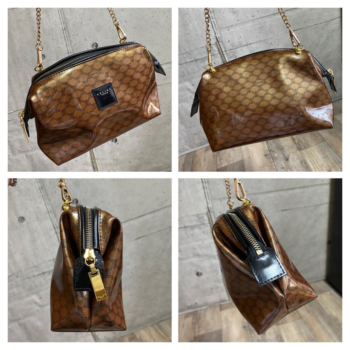 イタリア製 素材:本革 エナメル レザー カラー:ブラウン サイズ:縦幅約16cm、横幅約27cm、マチ約9cm、ショルダー長さ約122cm、 付属品なし※本体のみ 内部 オープンポケット×2 #セリーヌ #CELINE #ショルダーバッグ #ボディバッグ #チェーンショルダー #マカダム #トリオンフ #レディース #メンズ #オールドセリーヌ #カジュアル #オールド #ヴィンテージ #アンティーク |