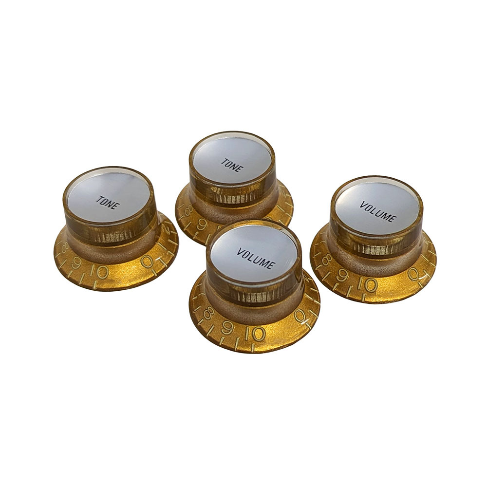 YJB PARTS リフレクターノブ(Vintage Tint) ビンテージゴールド/シルバープレート(エンボス文字) インチ 4pcs (メール便のみ送料無料)