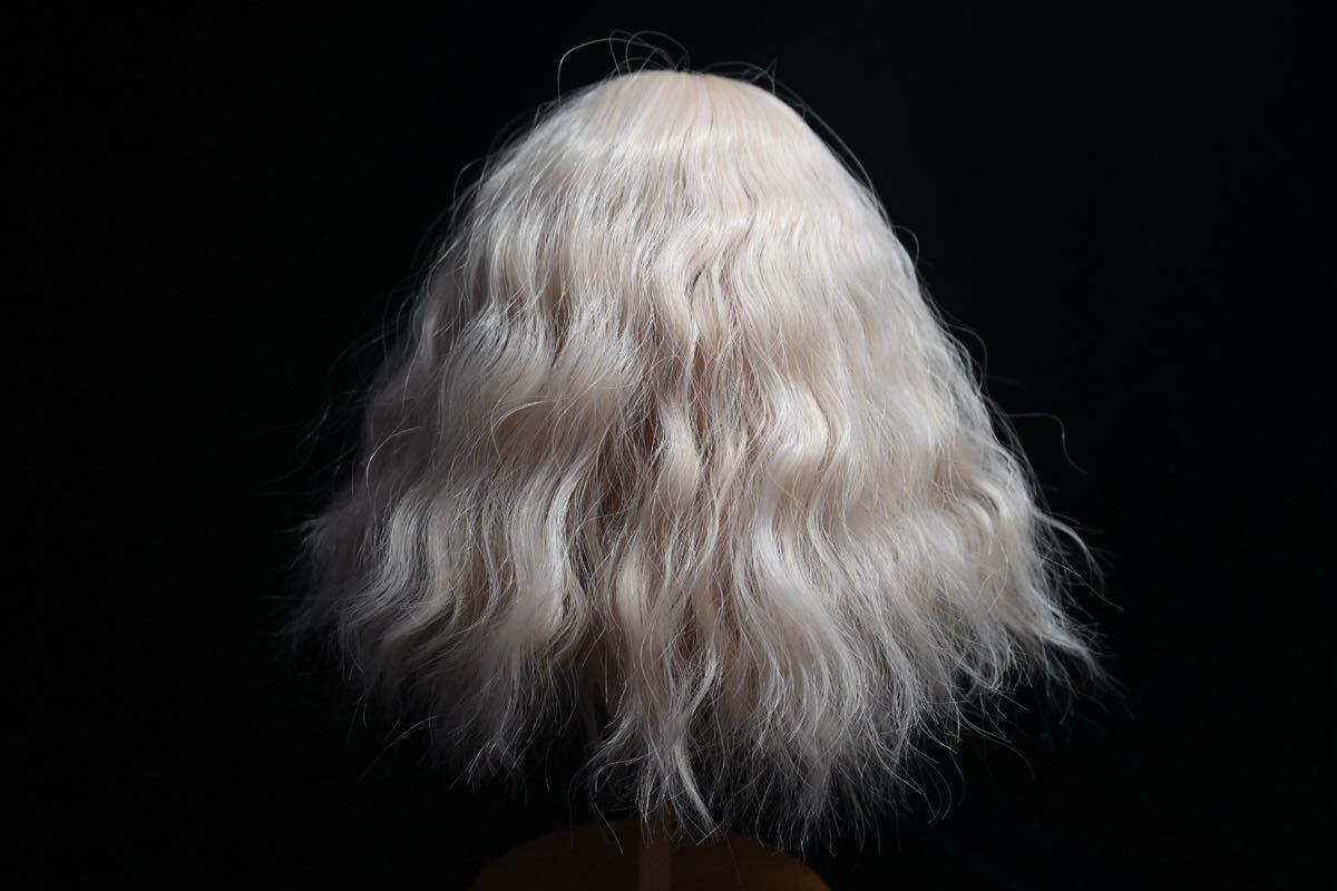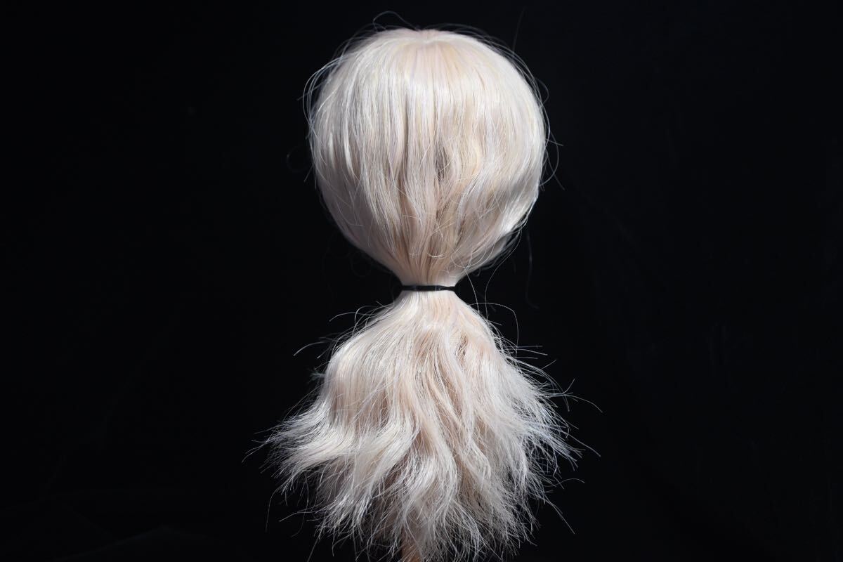 ヘアアイロンを100〜150℃に設定し、ウィッグに10〜15秒あてると形状記憶されます。長時間の加熱は避けてください。