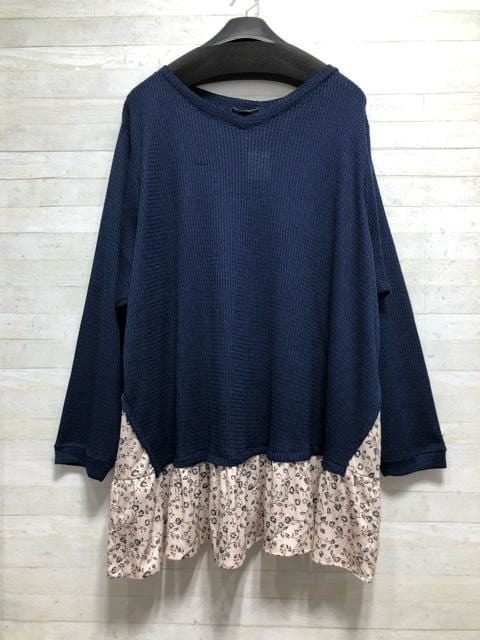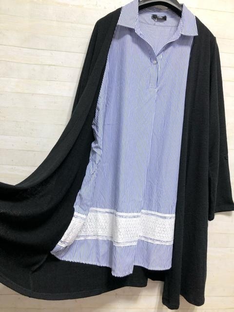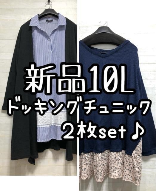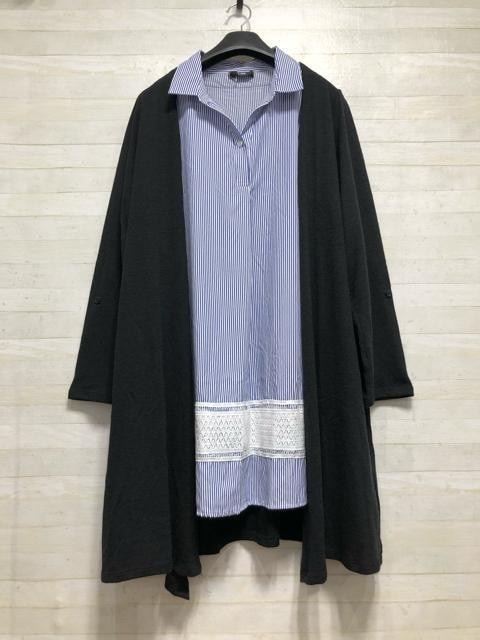 新品☆10L♪重ね着風ドッキングチュニックを2枚♪カーディガン一体化Q238