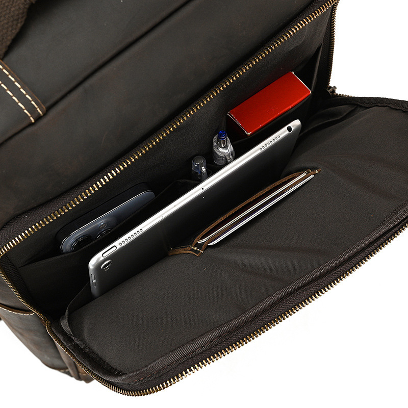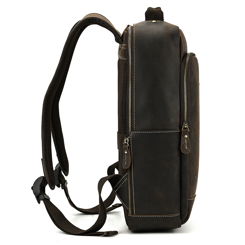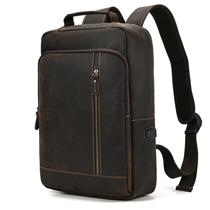 上質な本革を使用したビジネス向けリュックサックです。シンプルでありながら洗練されたデザインが特徴で、通勤?通学から日常使いまで幅広く活用できる大容量バッグです。メイン収納にはノートPCや書類を安全に収納できる専用ポケットがあり、外側にもジッパーポケットを備え、スマートフォンや小物を手軽に取り出せる利便性を実現しています。